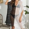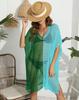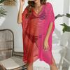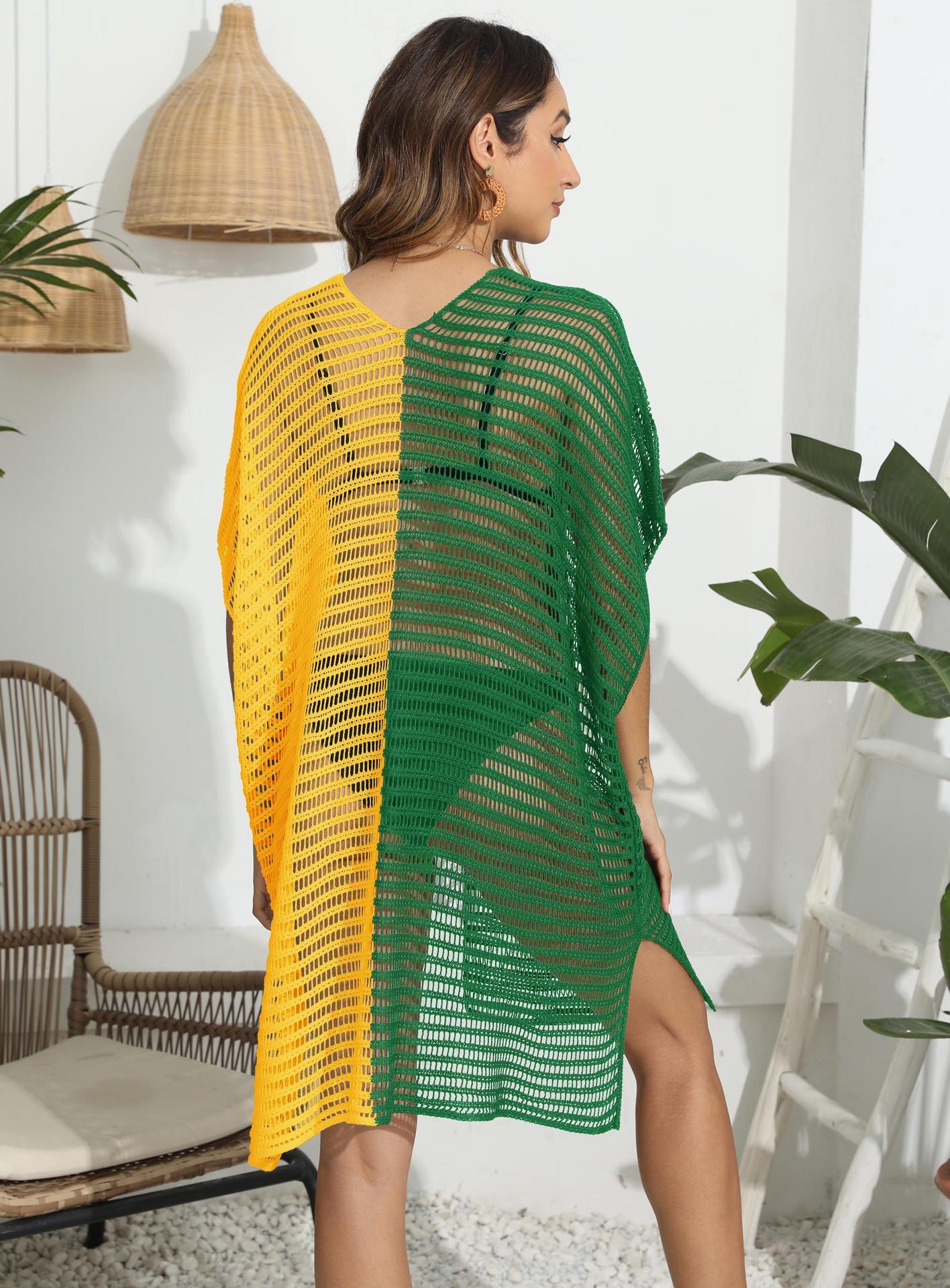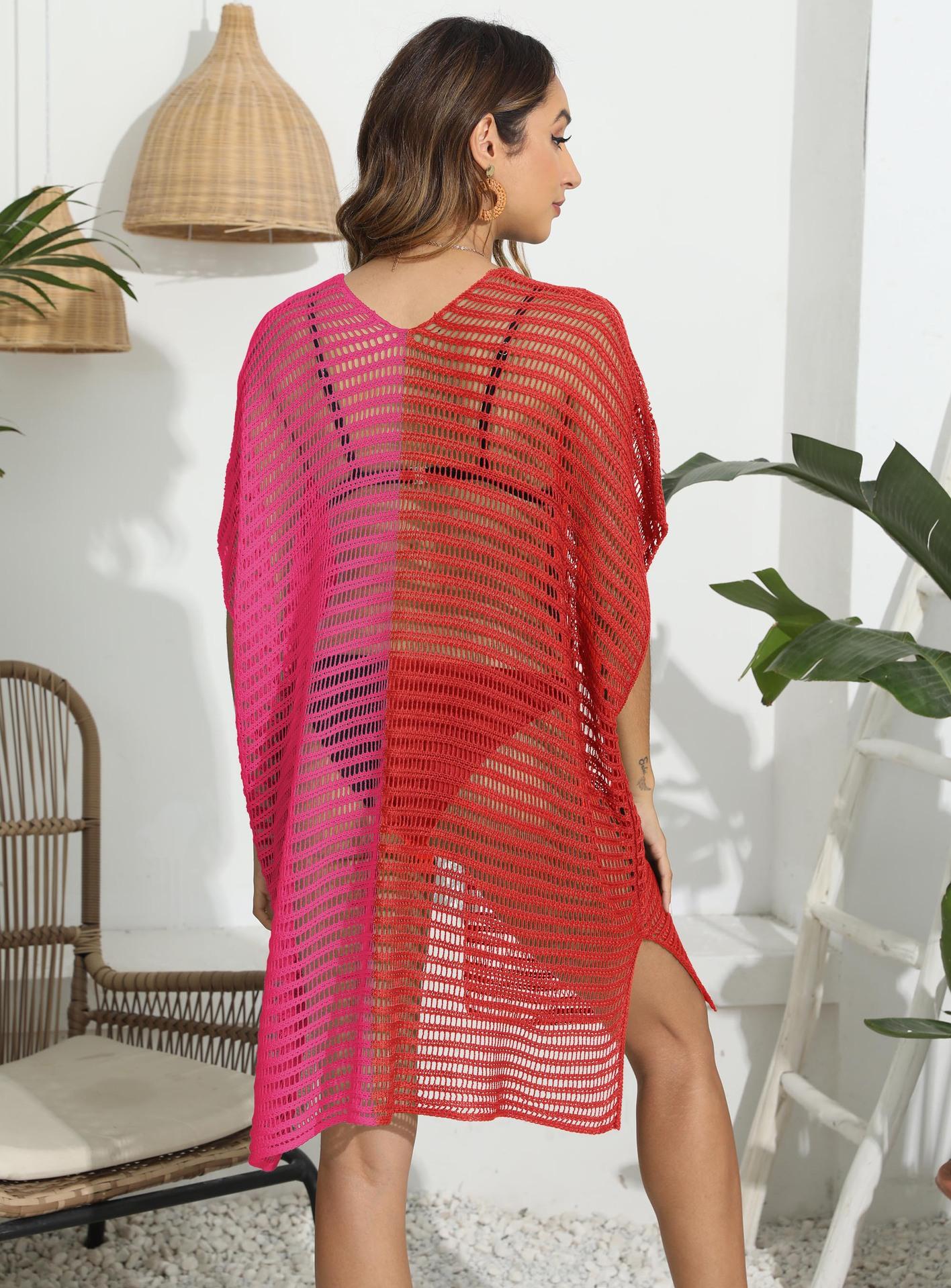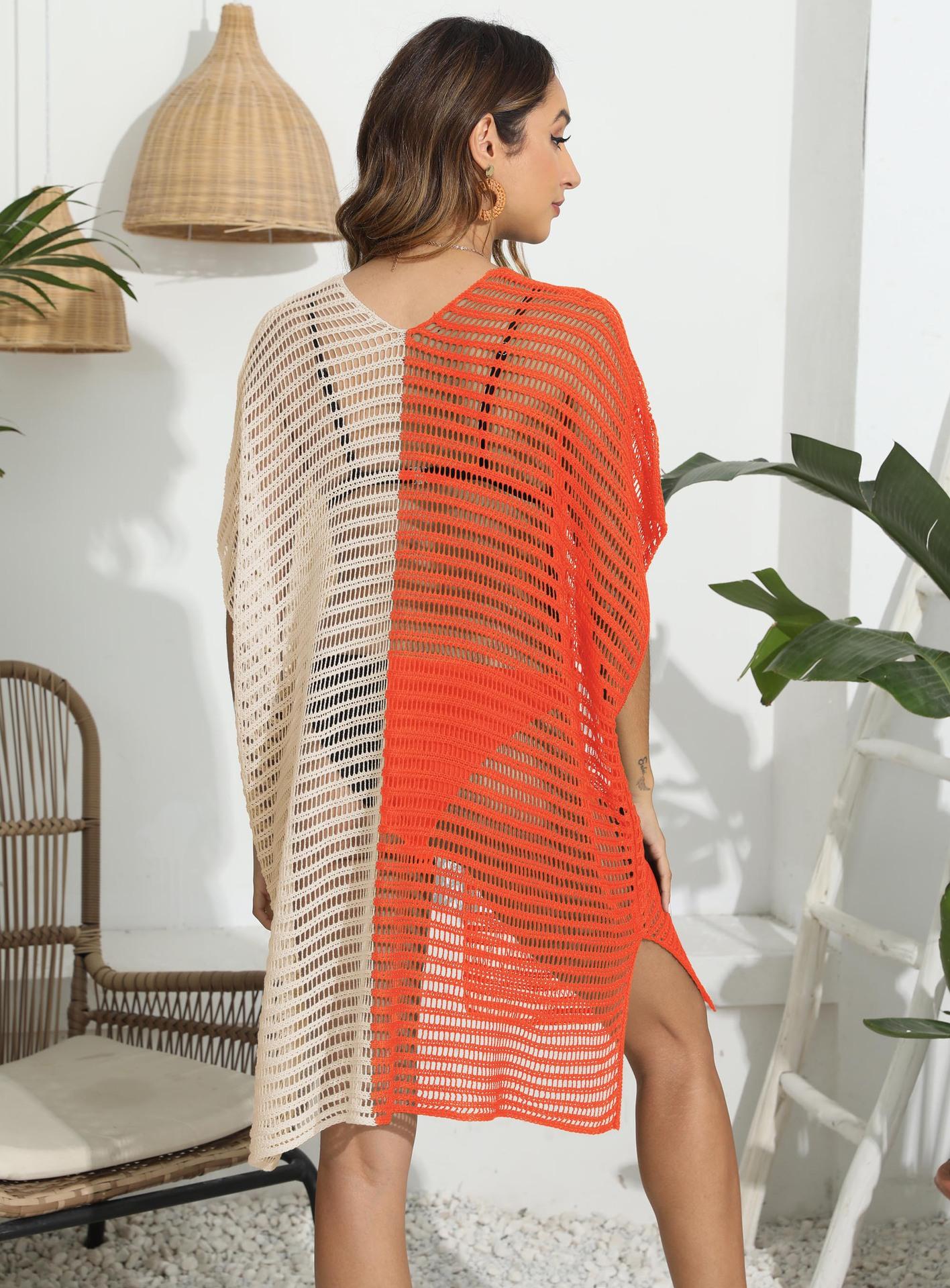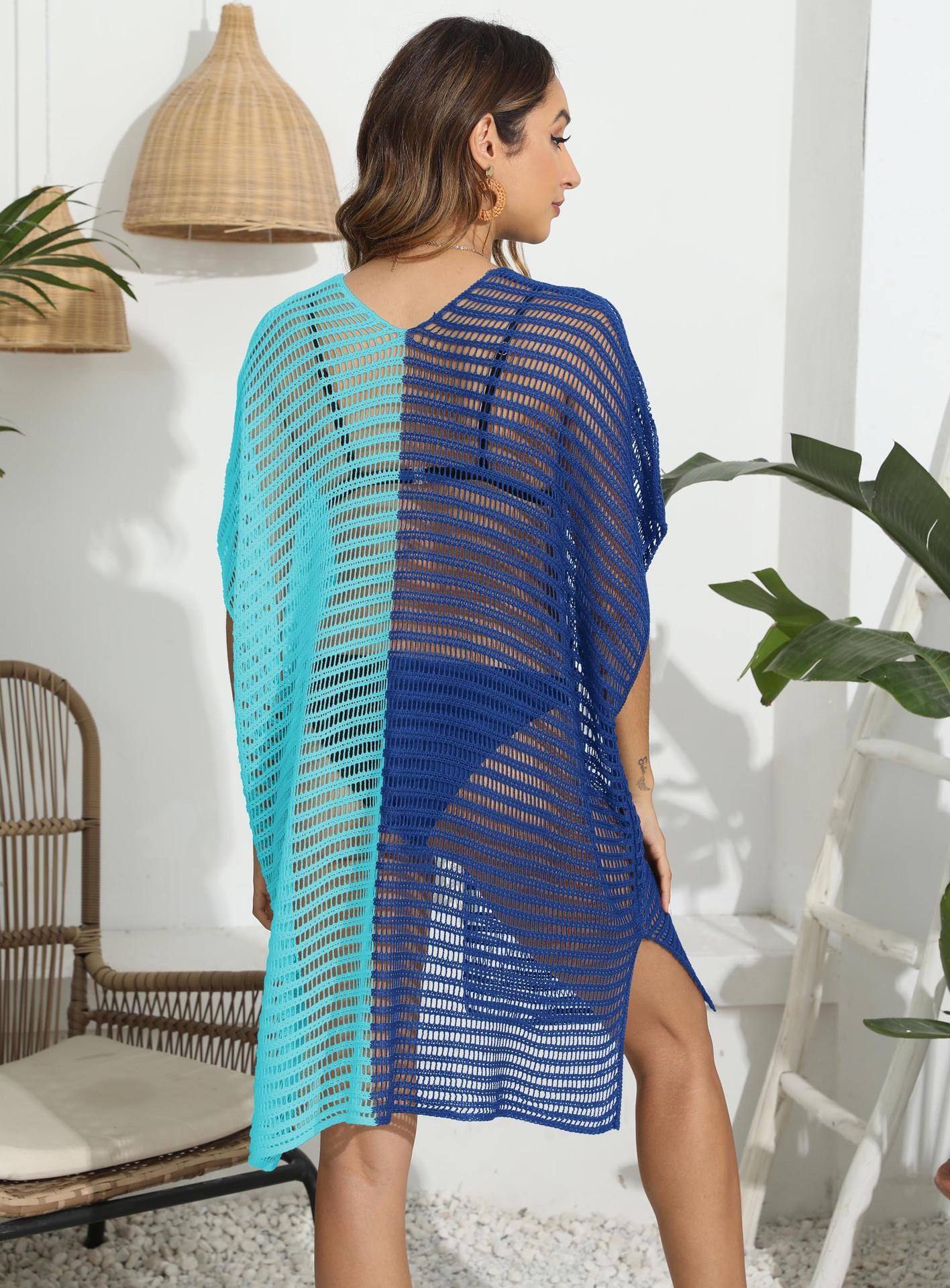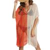 Vestido de mujer, ropa transfronteriza europea y americana, con costuras de colores contrastantes, escote en V profundo, camisa hueca tejida a máquina, blusa de bikini de playa 835