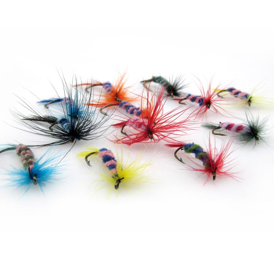 La pesca con mosca se suele llamar anzuelo de pelo, que se hace atando pelo al anzuelo. La forma del anzuelo de pelo imita principalmente los insectos y los bichos de agua de los que se alimentan los peces en el entorno natural del caladero. Dependiendo de la capa de agua donde se encuentre el pez objetivo, el anzuelo de pelo se divide en anzuelos de pelo seco para pescar peces que se alimentan en la superficie del agua, y anzuelos de pelo húmedo para pescar peces en la capa media o incluso en la capa de agua.