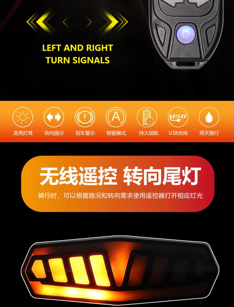 Luz de bicicleta equipo para montar al aire libre luz trasera para coche de carretera de montaña control remoto inalámbrico LED brillante luz de ciclismo con dirección