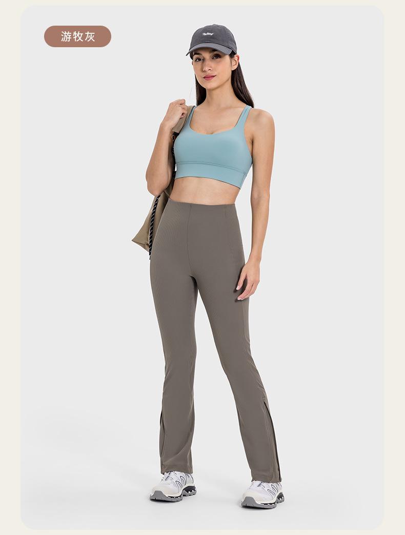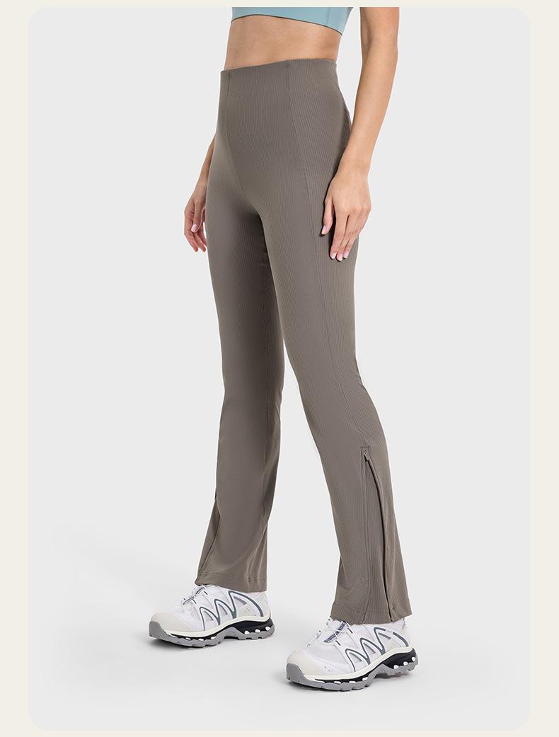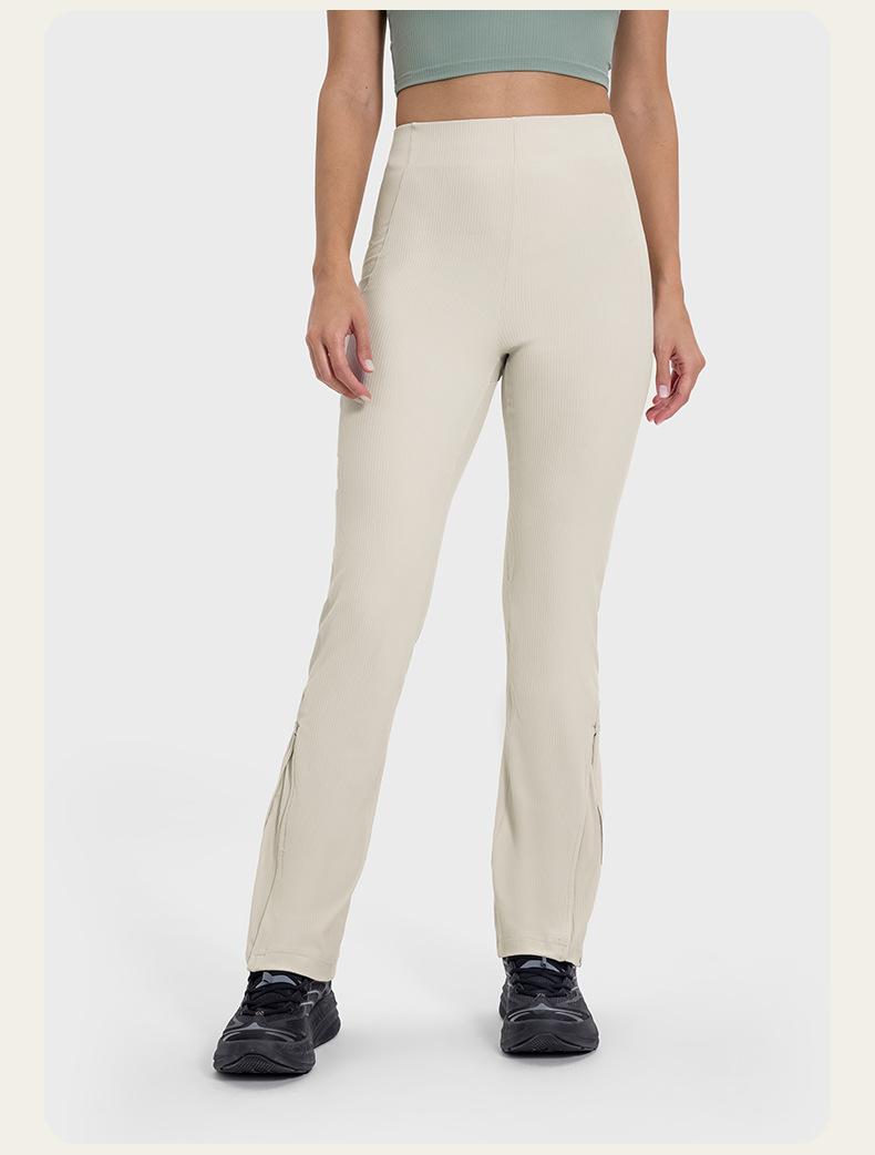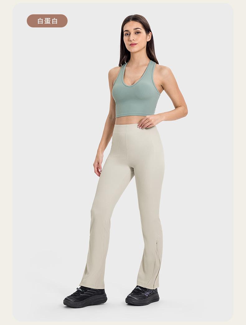 Primavera y Verano Nuevo Estilo Nude Cintura Alta Levanta Glúteos Pantalones de Yoga, Pantalones Acampanados Ajustables con Cremallera en el Tobillo Modernos y Casuales Dss081