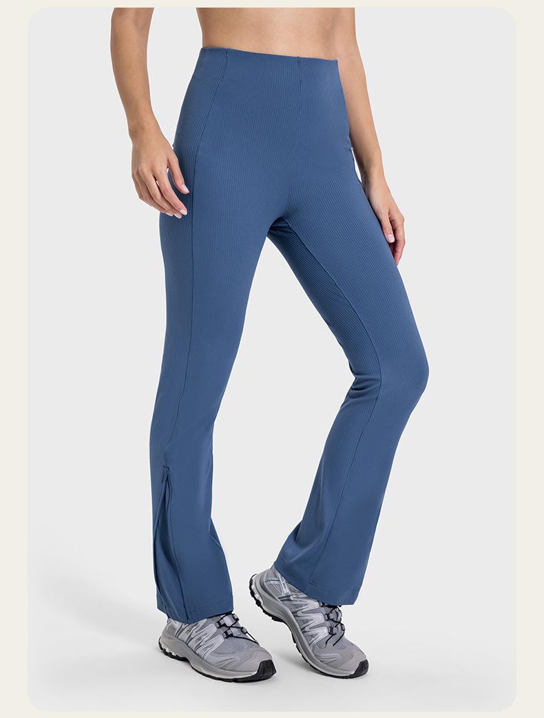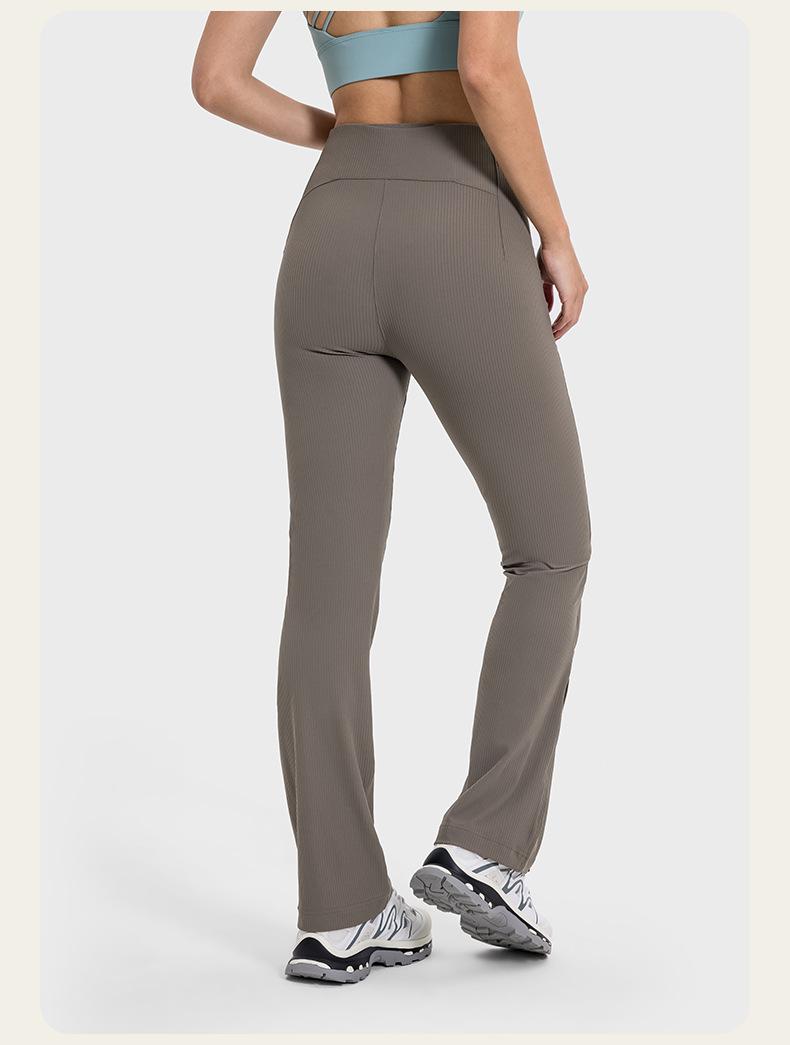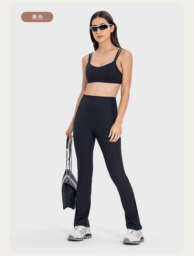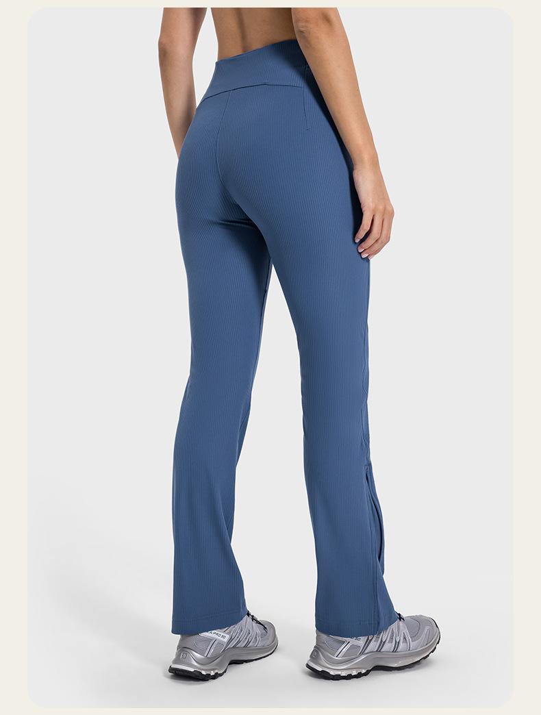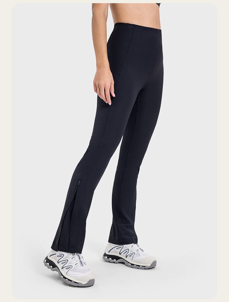 Primavera y Verano Nuevo Estilo Nude Cintura Alta Levanta Glúteos Pantalones de Yoga, Pantalones Acampanados Ajustables con Cremallera en el Tobillo Modernos y Casuales Dss081