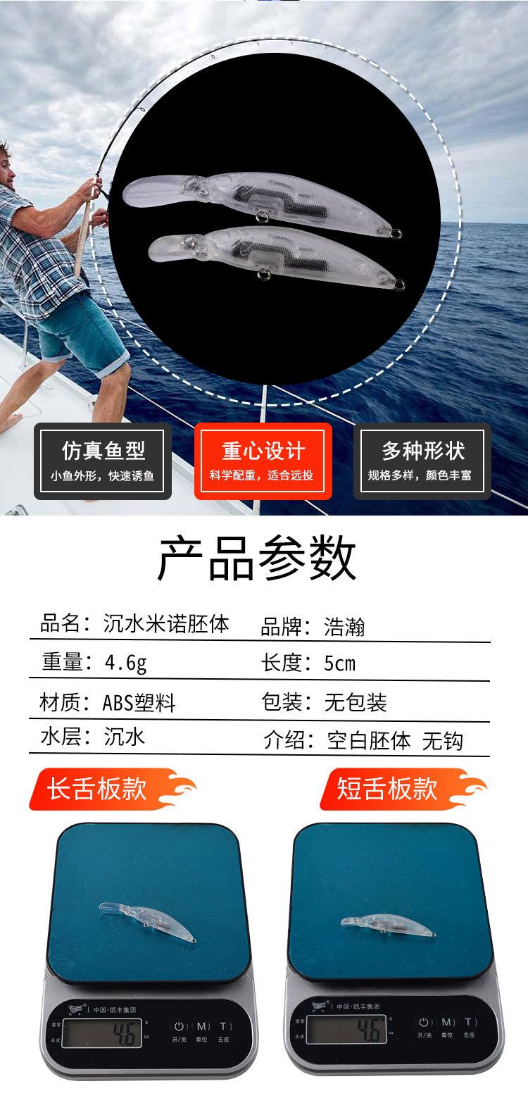 Lanzamiento Largo Luya Biónica Sumergida Mino Dos Placas de Lengüeta Larga y Corta Dos Modelos de Cuerpo Embrión de Señuelo Duro de Plástico sin Pintar