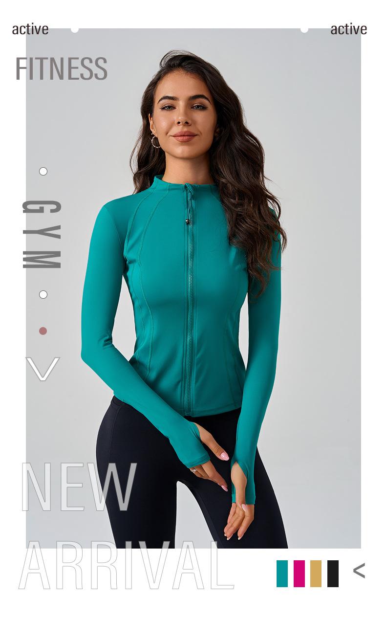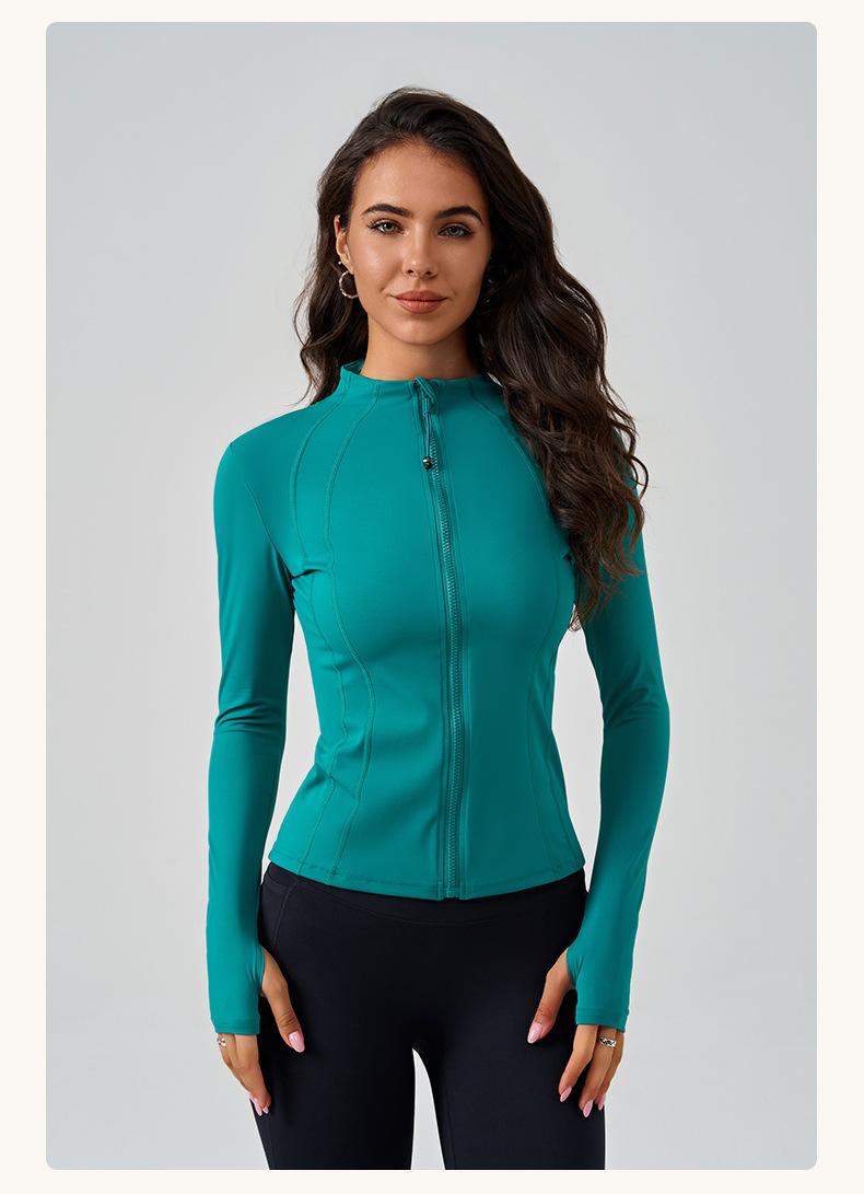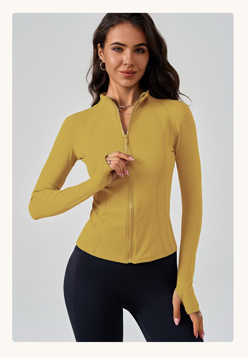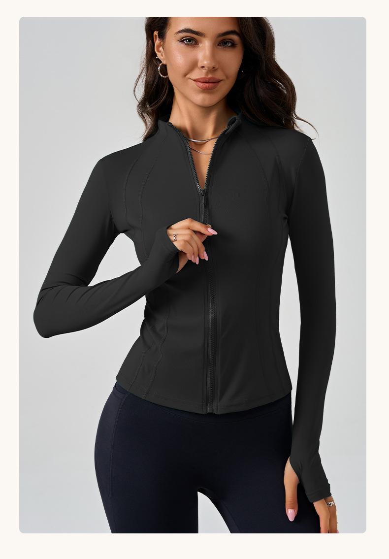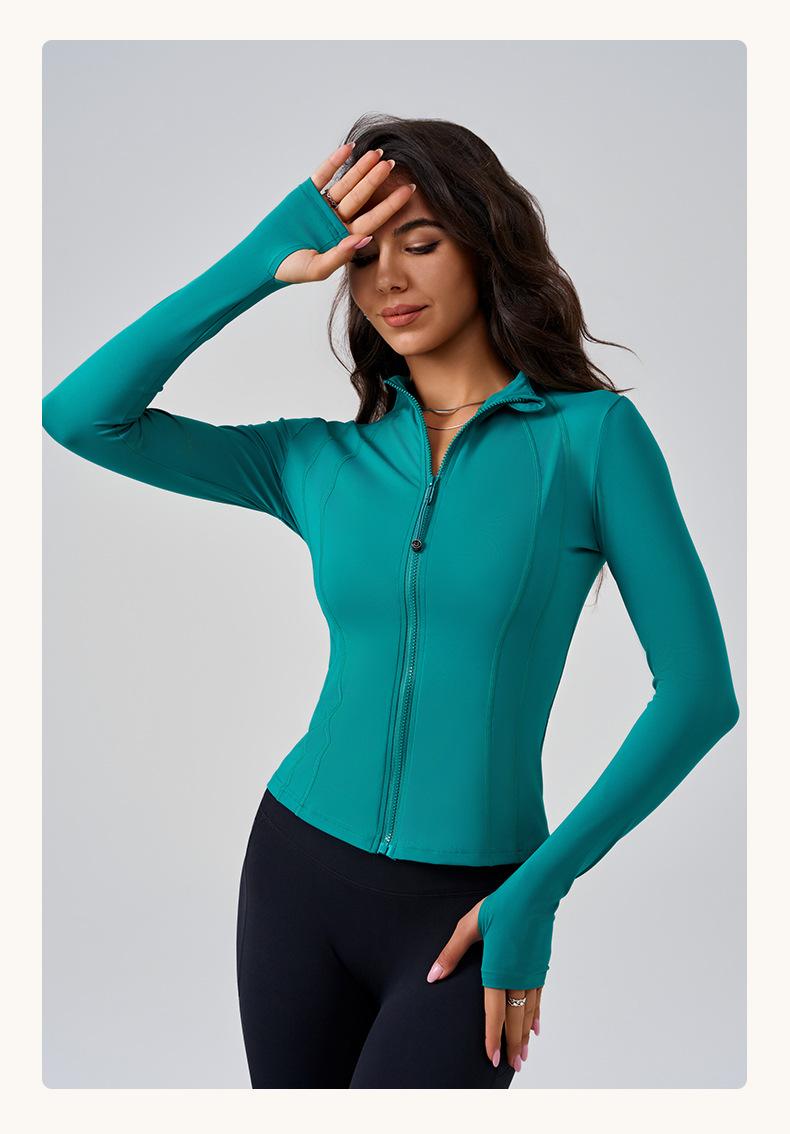 Chaqueta Deportiva Nueva Transfronteriza para Mujer Corte Slim Cárdigan con Cremallera Alta Elasticidad Cómoda Aeróbicos Correr Fitness Ropa de Yoga