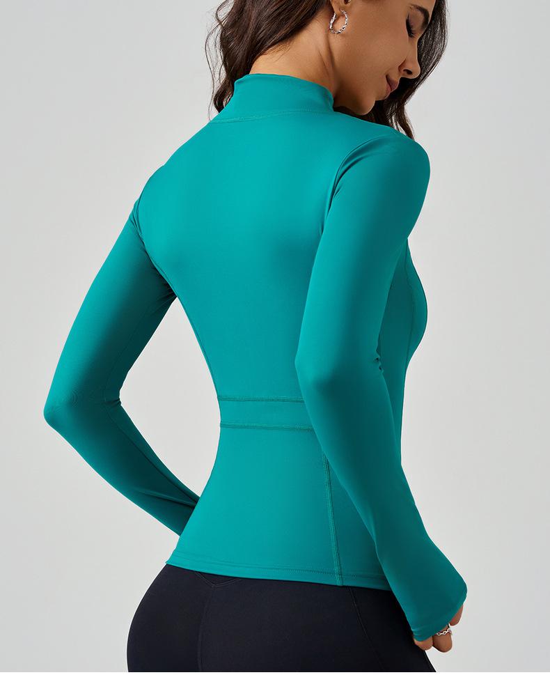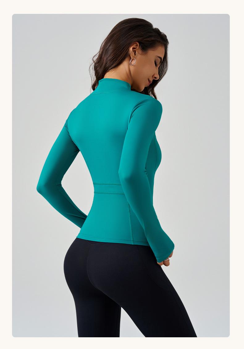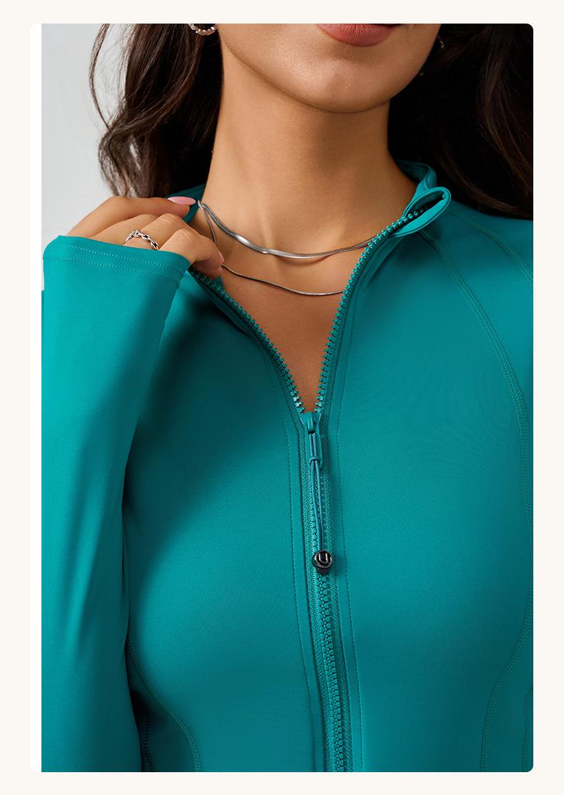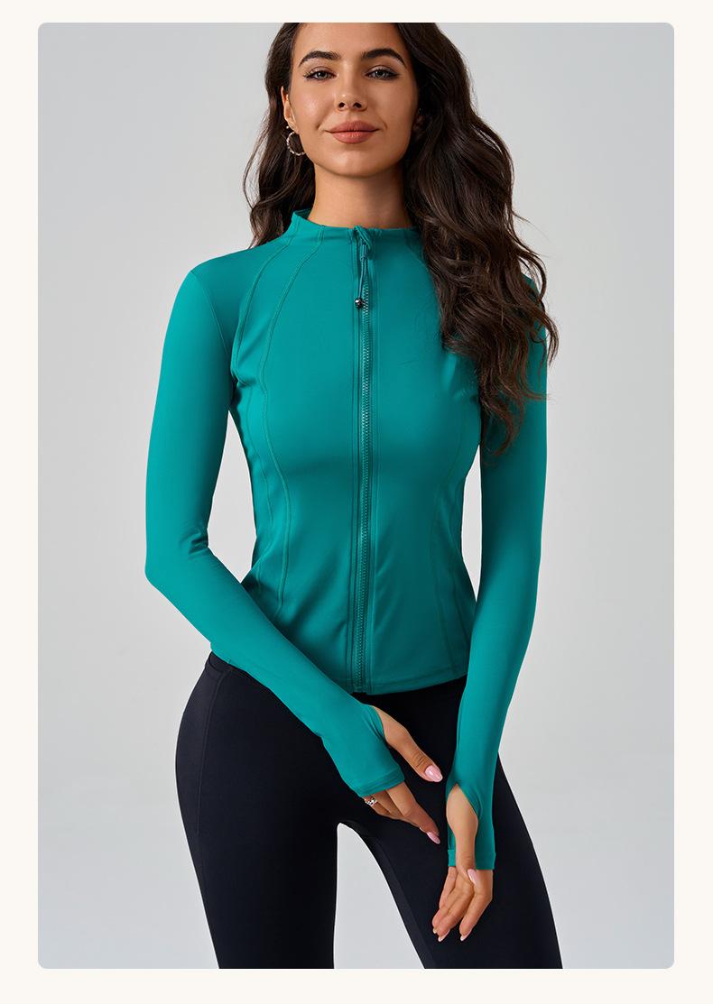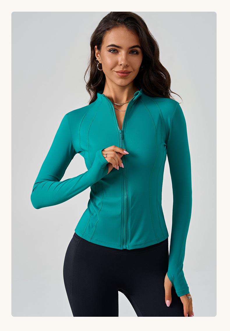 Chaqueta Deportiva Nueva Transfronteriza para Mujer Corte Slim Cárdigan con Cremallera Alta Elasticidad Cómoda Aeróbicos Correr Fitness Ropa de Yoga