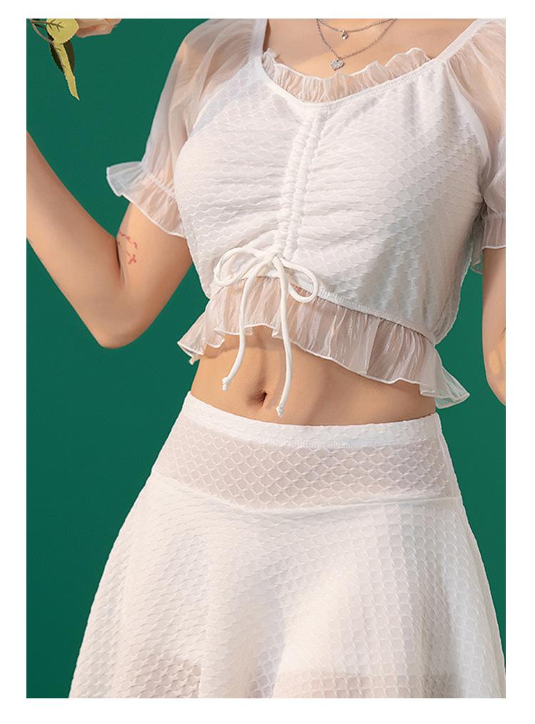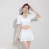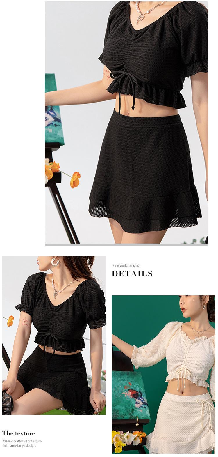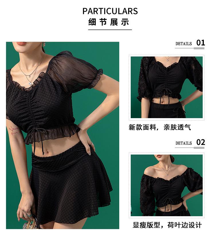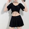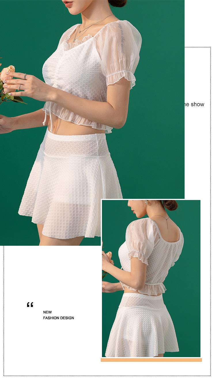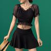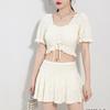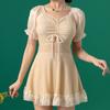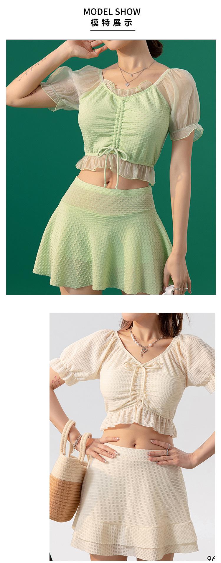 Traje de baño femenino 2025 verano conservador delgado dulce color sólido falda traje de baño dividido aguas termales traje de baño bóxer al por mayor