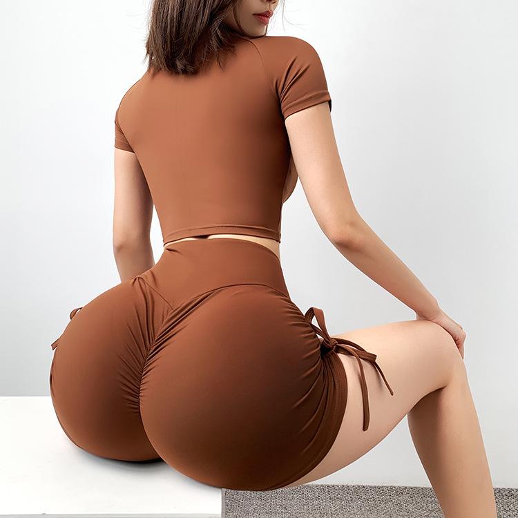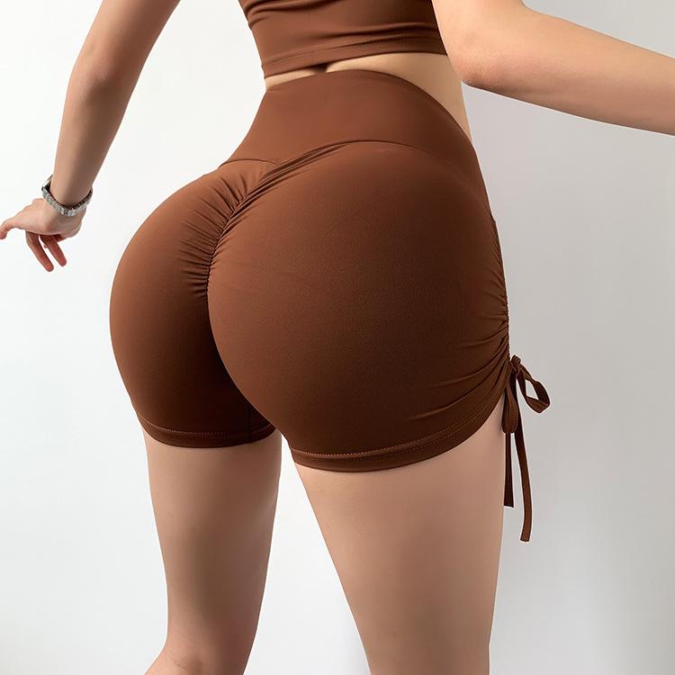Pantalones cortos deportivos de cintura alta con cordón ajustable para mujer, transpirables, ajustados, para yoga