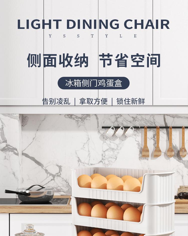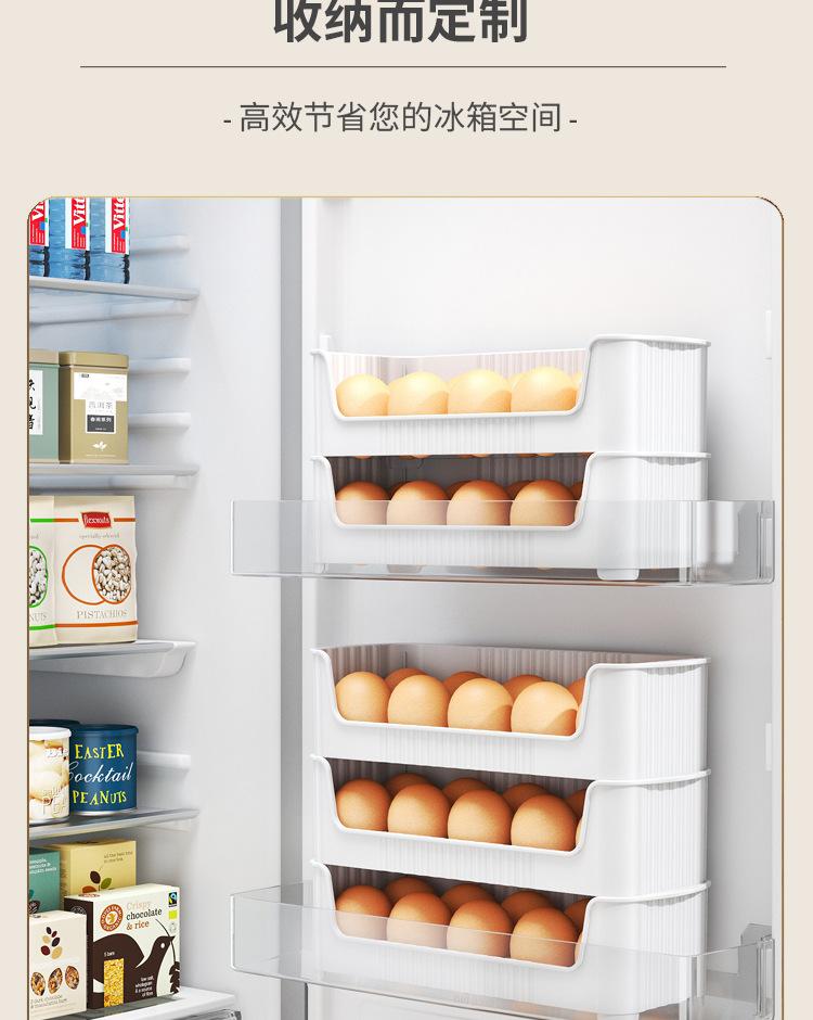 Caja de almacenamiento de huevos, refrigerador, puerta lateral, estante de almacenamiento, apilable, cocina, bandeja dedicada para huevos, caja de conservación, caja de huevos