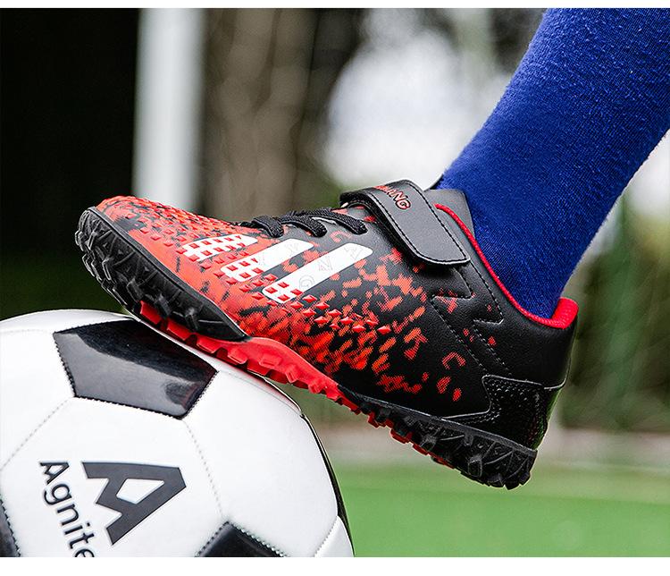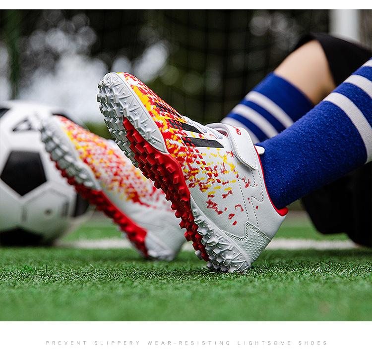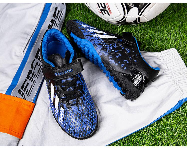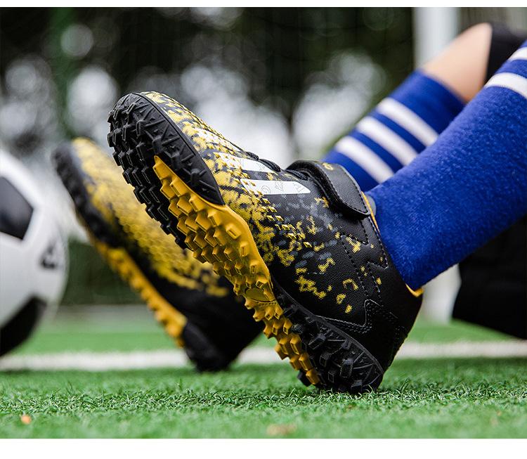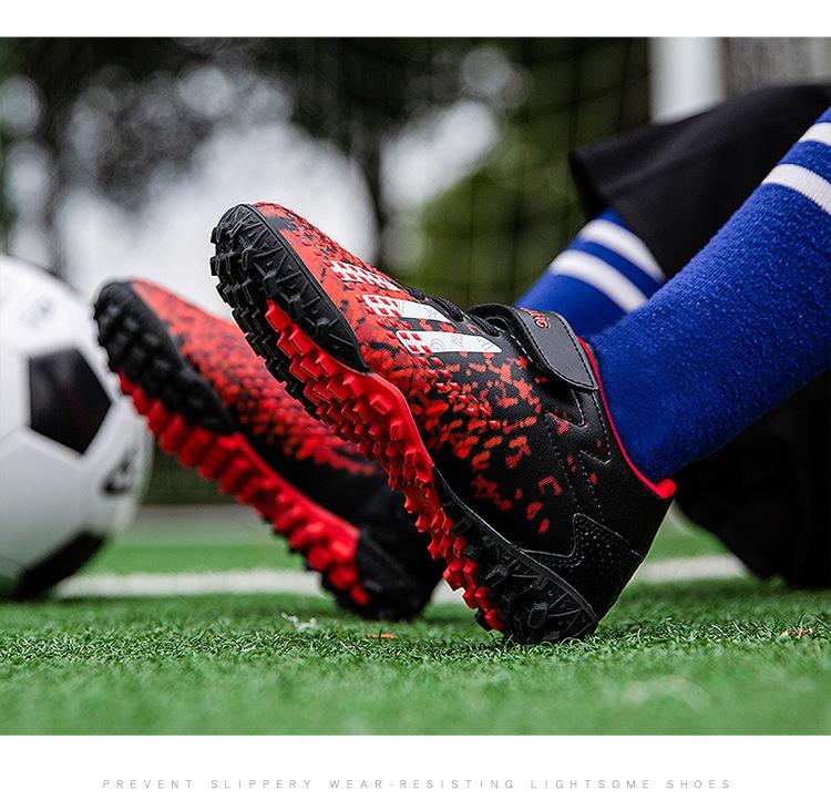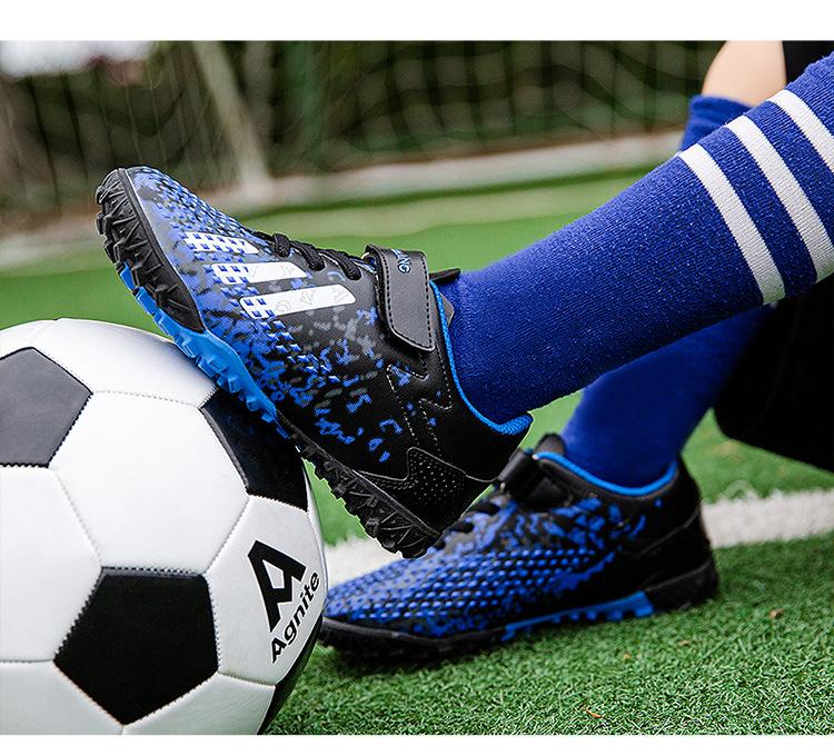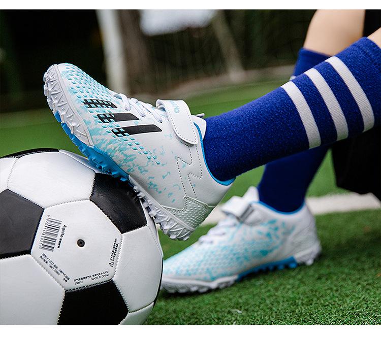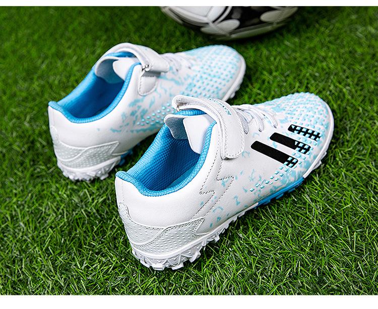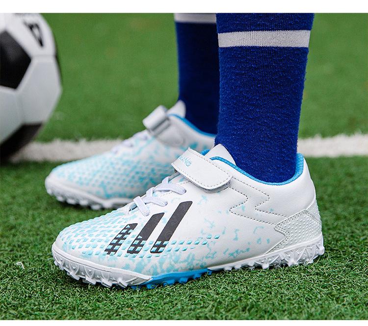 Zapatillas de fútbol para niños con velcro y clavos triturados para entrenamiento de césped artificial, deportivas para exteriores para estudiantes de primaria y secundaria.