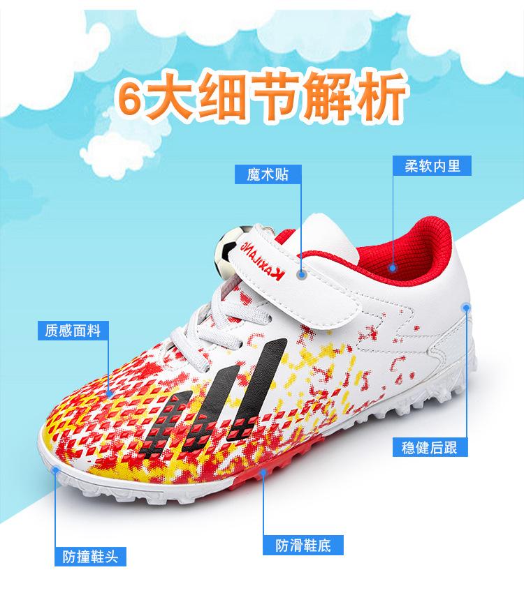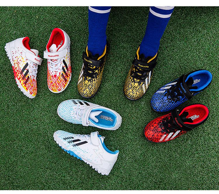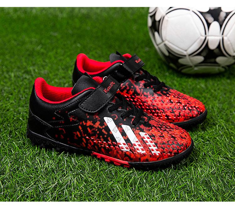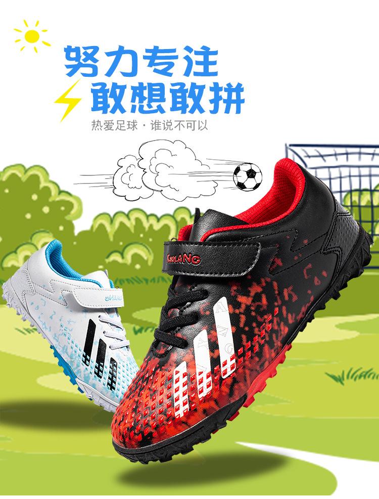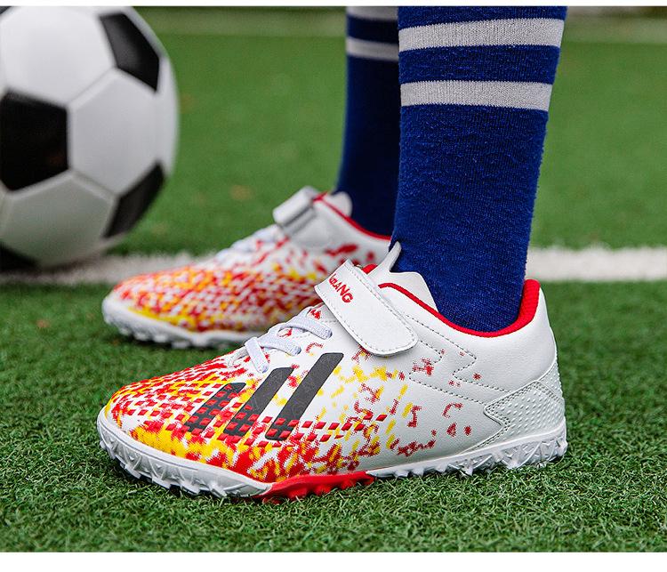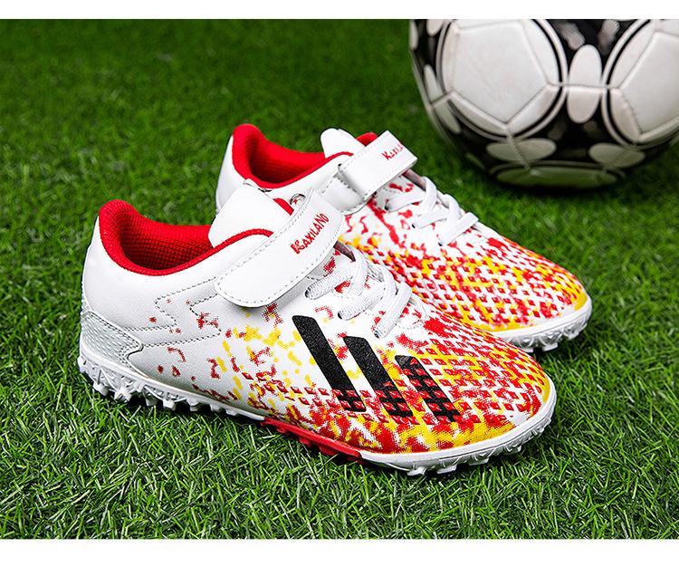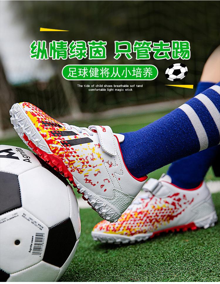 Zapatillas de fútbol para niños con velcro y clavos triturados para entrenamiento de césped artificial, deportivas para exteriores para estudiantes de primaria y secundaria.