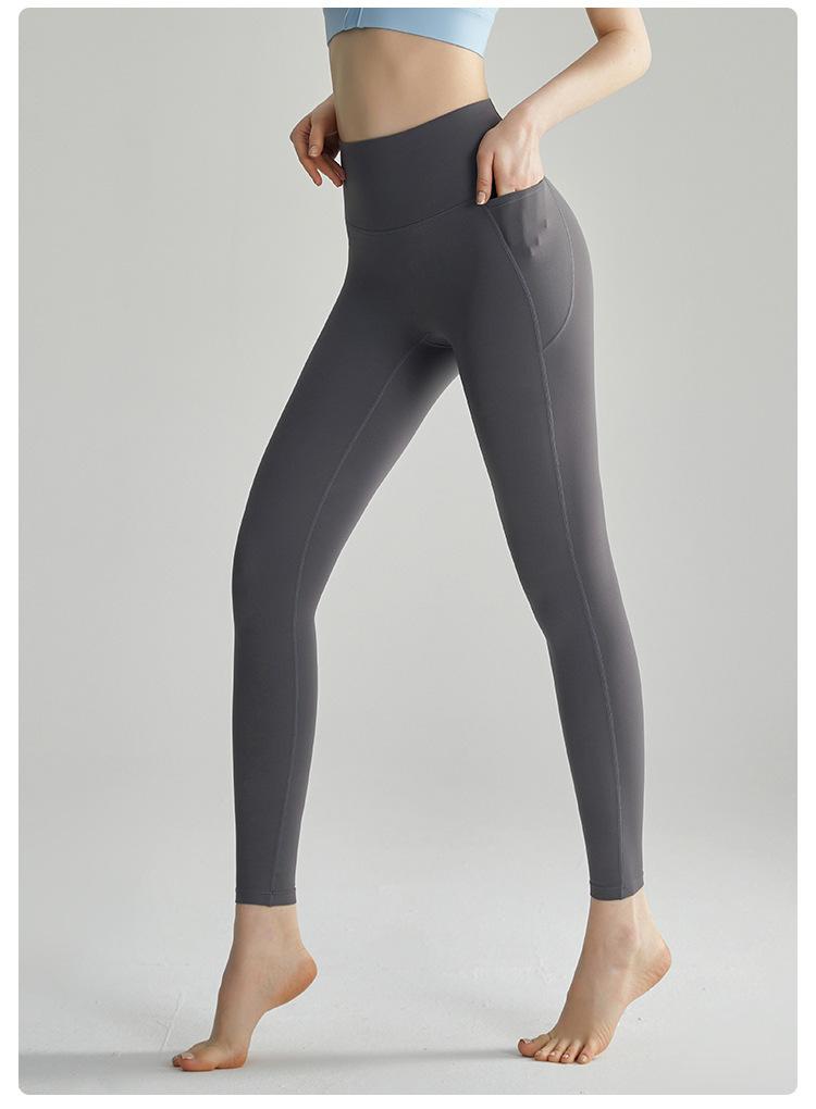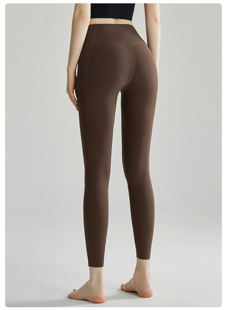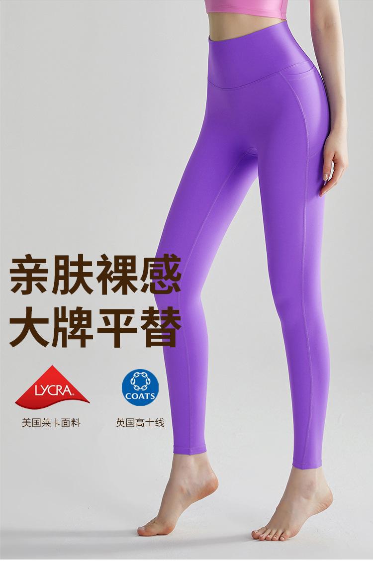 Pantalones de yoga nuevos nude transfronterizos Lycra para mujer cintura alta levantamiento de cadera pantalones de fitness deportivos para exteriores de secado rápido ajustados ropa de yoga
