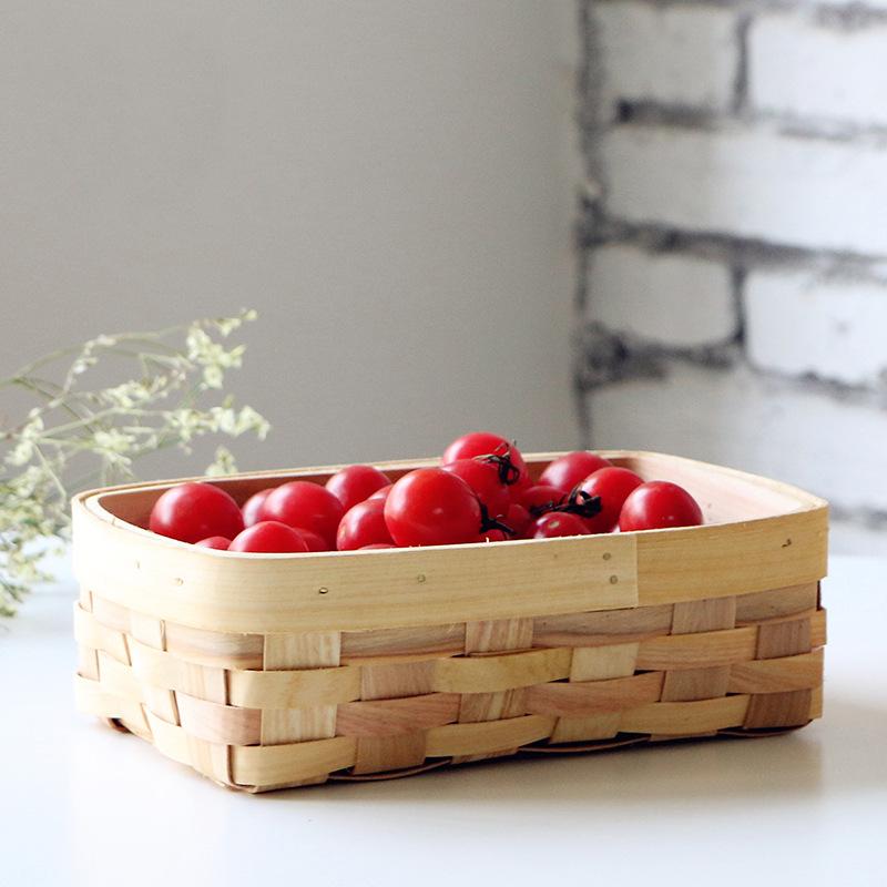 Cesta rectangular tejida de madera, cesta de almacenamiento para el hogar, cesta para agua, frutas y verduras