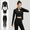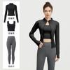 Traje de yoga Juyitang de primavera y otoño de tres piezas, ajustado, adelgazante, para fitness, para correr por la mañana.