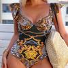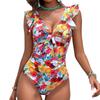 Traje de Baño de Playa con Estampado Nuevo Europeo y Americano con Volantes y Abertura Amazon Adelgazante de Alta Gama para Aguas Termales Bikini