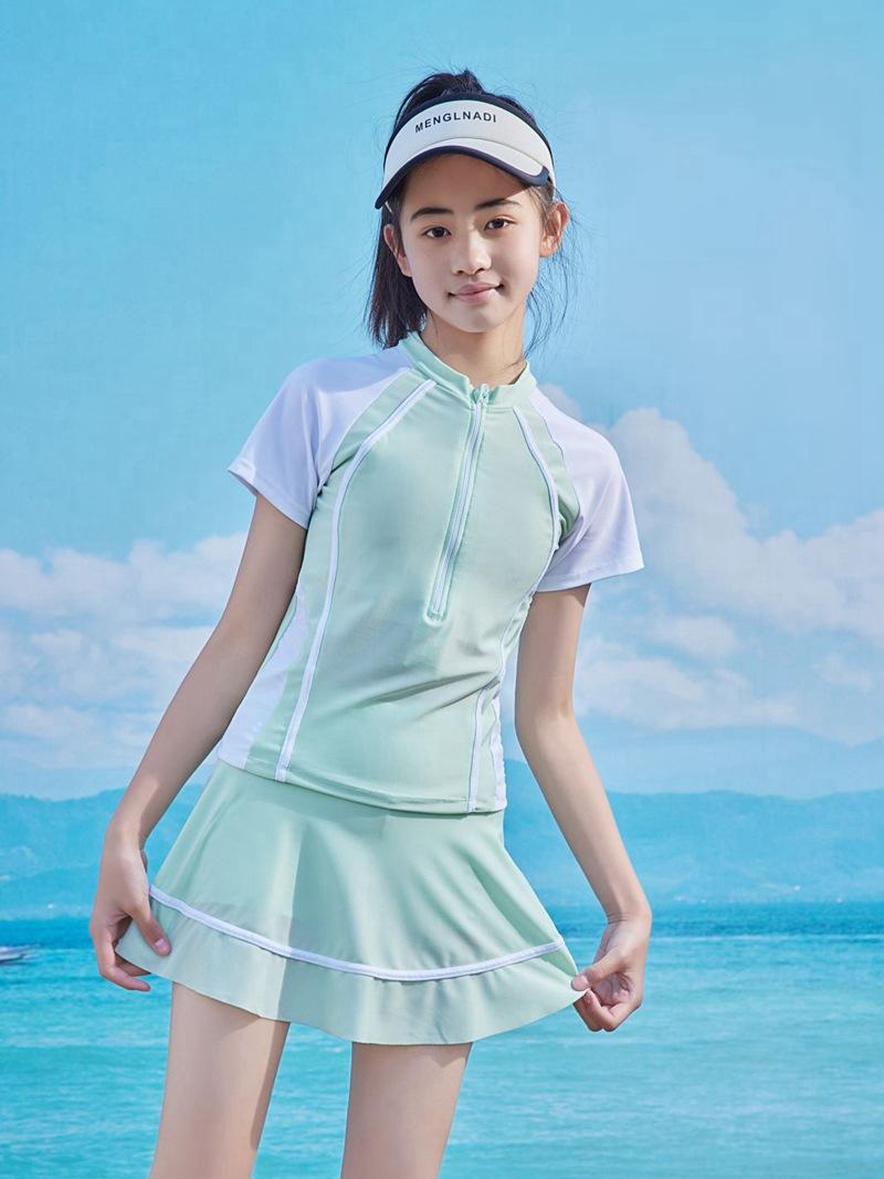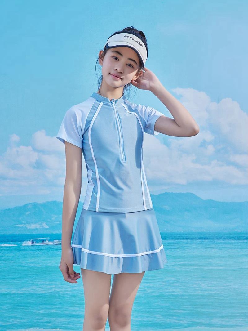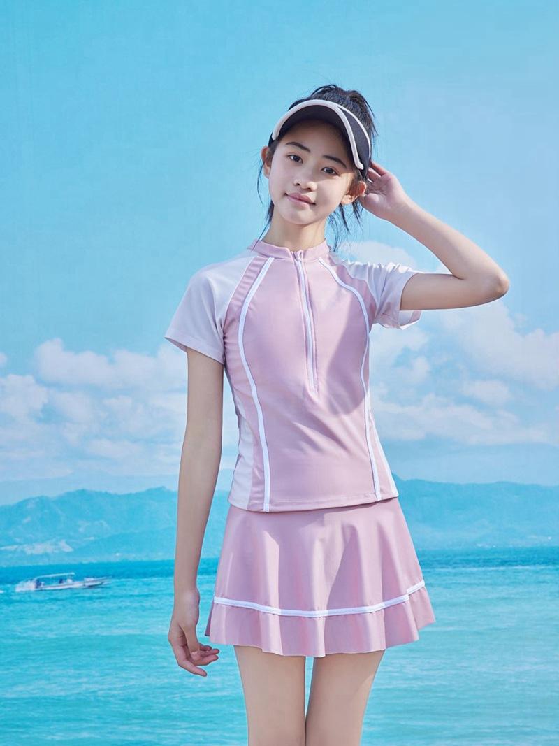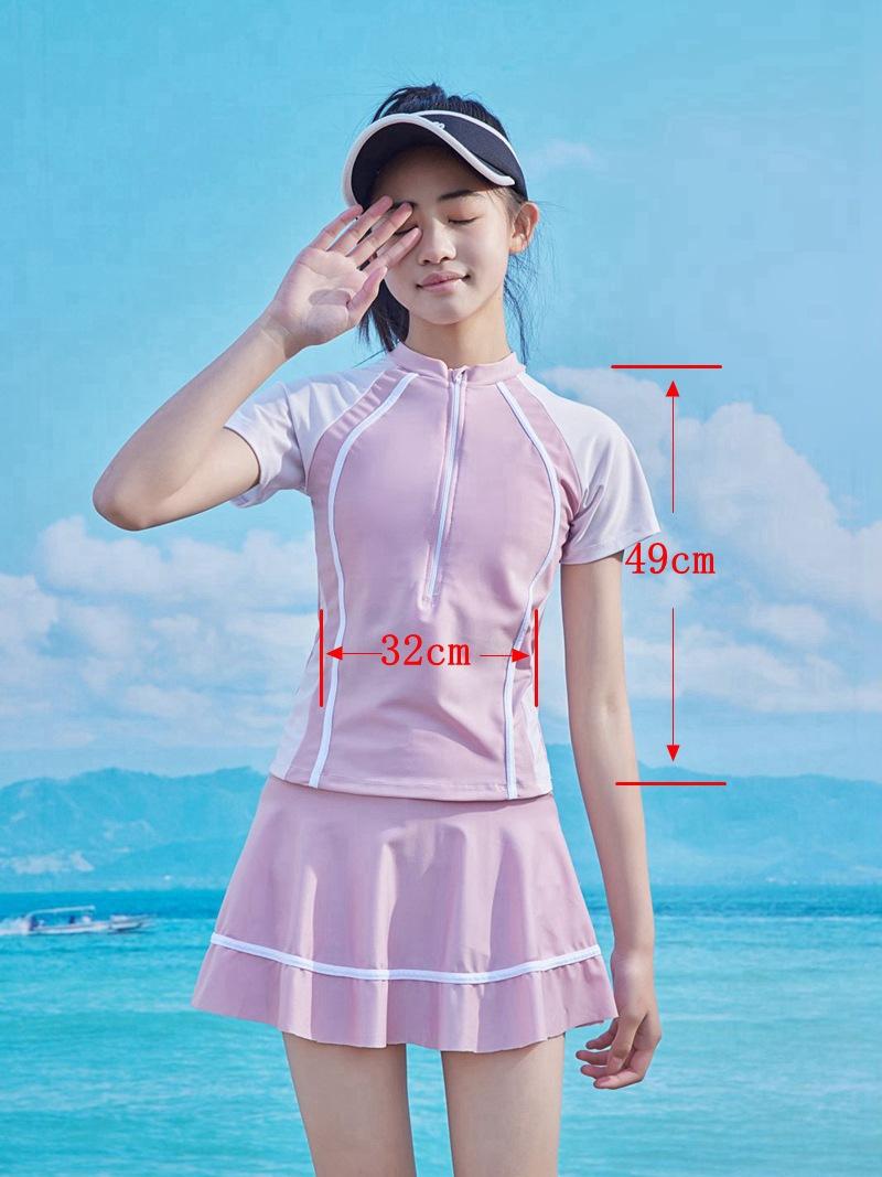 Traje de baño deportivo de dos piezas, traje de baño para niños medianos y grandes, tejido de poliéster, sencillo, moderno, juvenil. ¡Adecuado para niñas de aproximadamente 8-12 años, 40-65 catties!