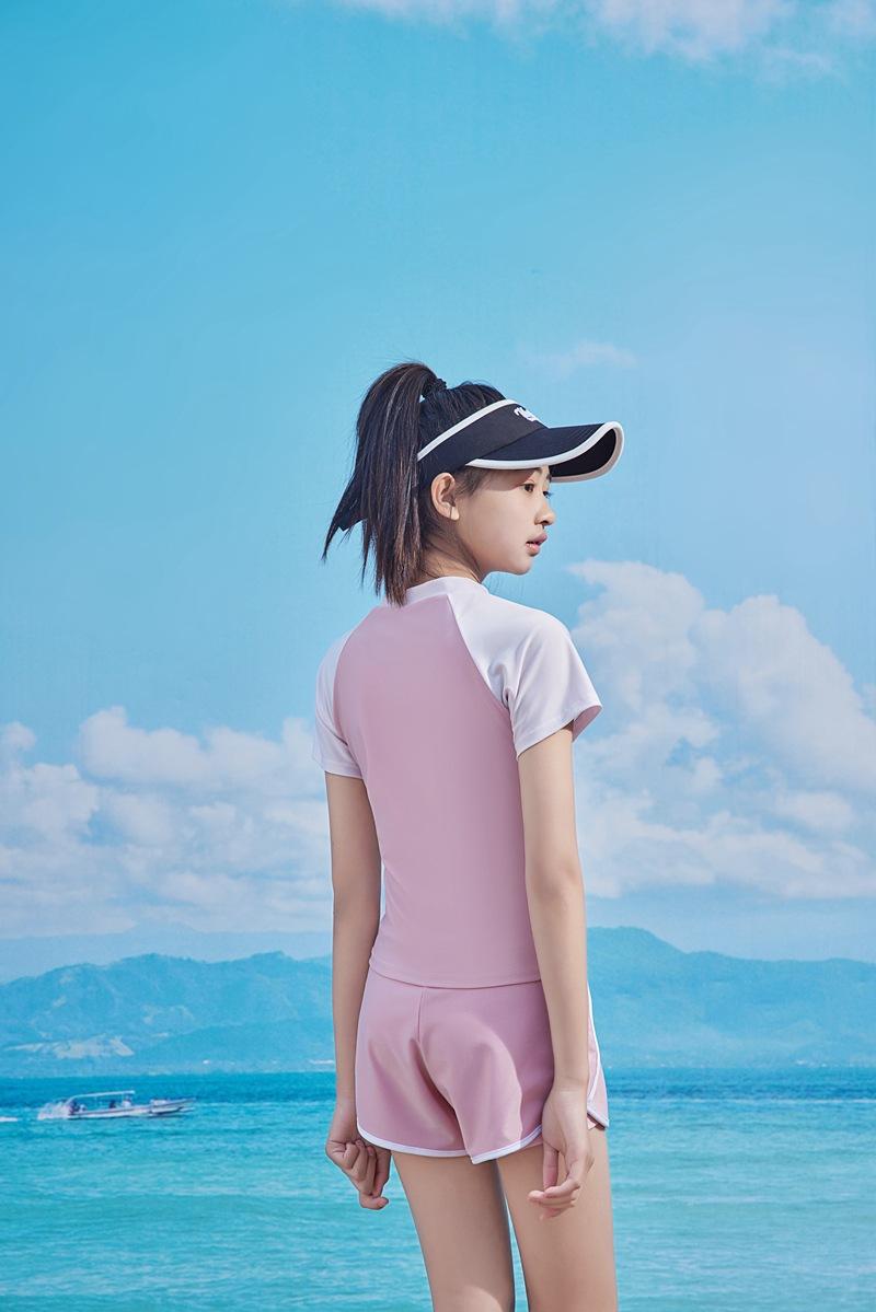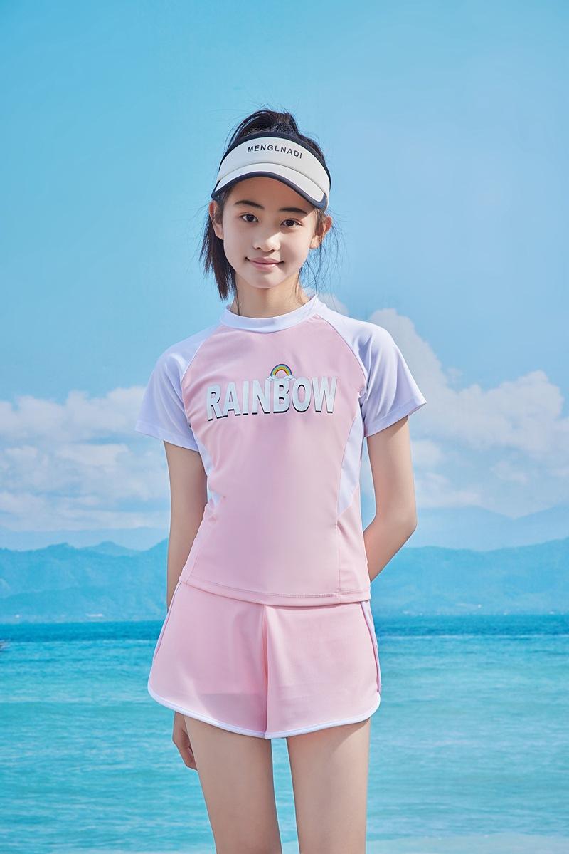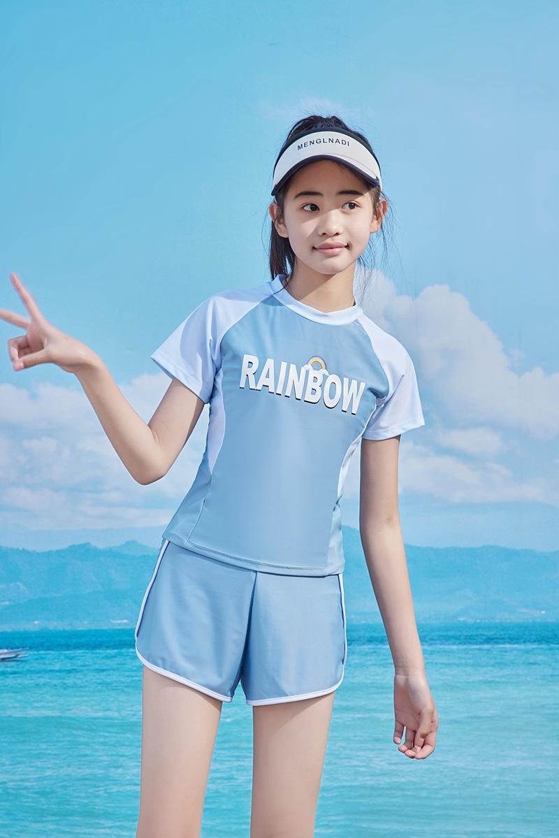 Traje de baño deportivo de dos piezas, traje de baño para niños medianos y grandes, tejido de poliéster, sencillo, moderno, juvenil. ¡Adecuado para niñas de aproximadamente 8-12 años, 40-65 catties!