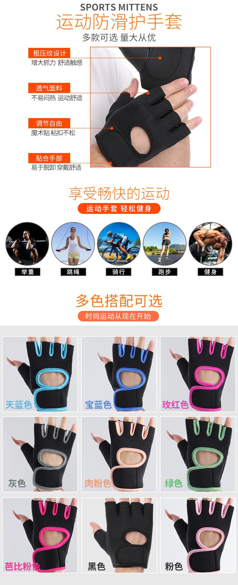 Guantes de fitness transfronterizos para adultos, hombres y mujeres, transpirables, antideslizantes, equipo de entrenamiento, protección de la palma, ciclismo, medio dedo, guantes deportivos
