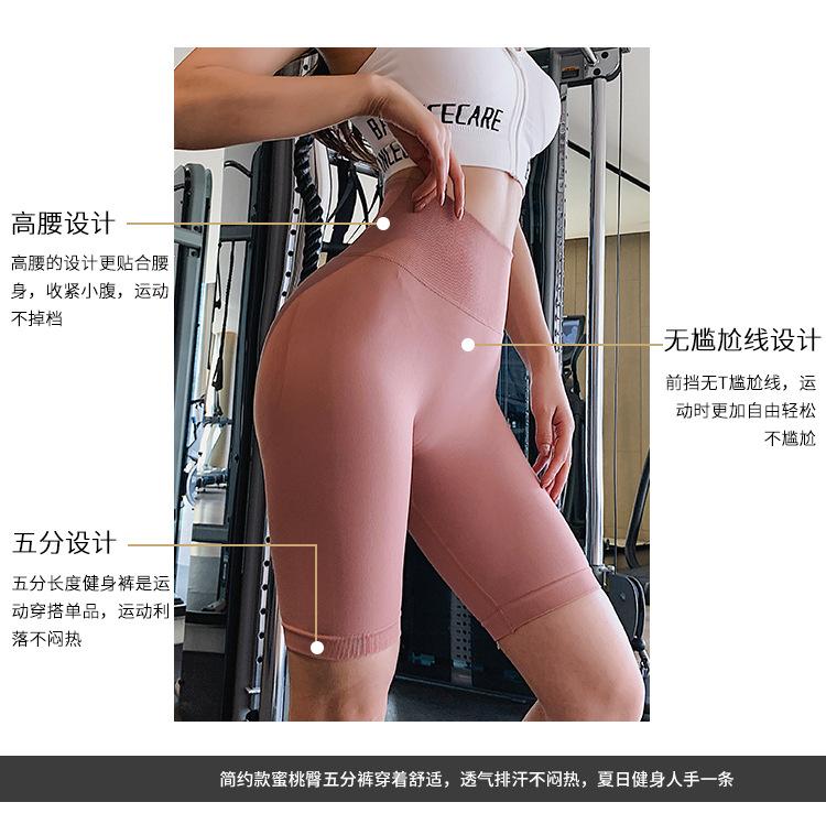 Pantalones de fitness sexys de cintura alta color melocotón para mujer, pantalones ajustados elásticos para levantar la cadera, pantalones cortos de yoga para correr de secado rápido, verano