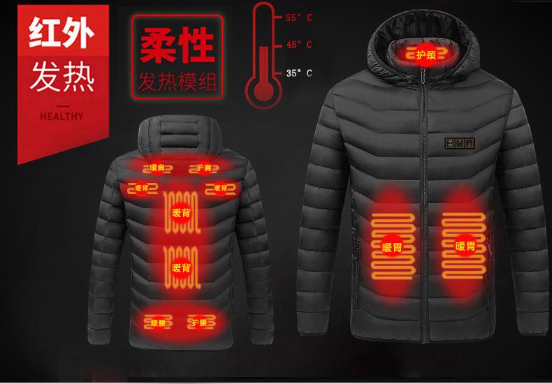 Chaqueta acolchada de algodón con calefacción inteligente de temperatura constante para invierno de 2022. Fabricantes de ropa acolchada de algodón con carga al aire libre para jóvenes y ocio. Venta al por mayor transfronteriza.