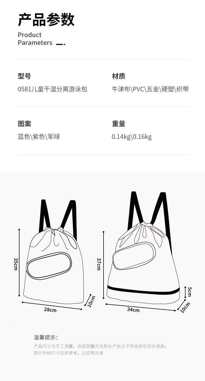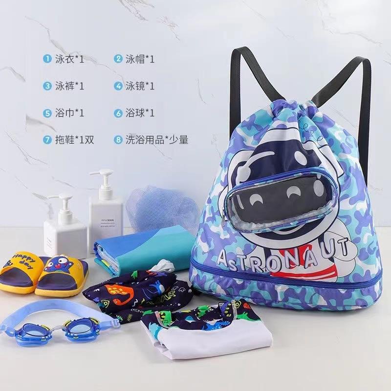 Bolsa de natación para niños, bolsa de almacenamiento impermeable y separada para artículos secos y húmedos, para niños y niñas, mochila de playa deportiva portátil con bonitos dibujos animados.