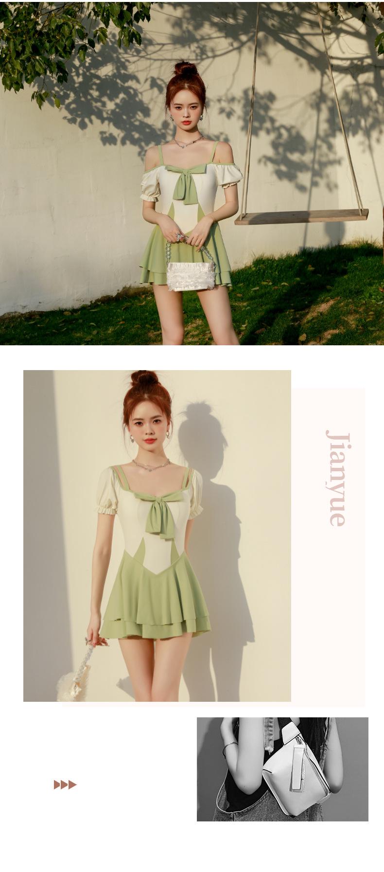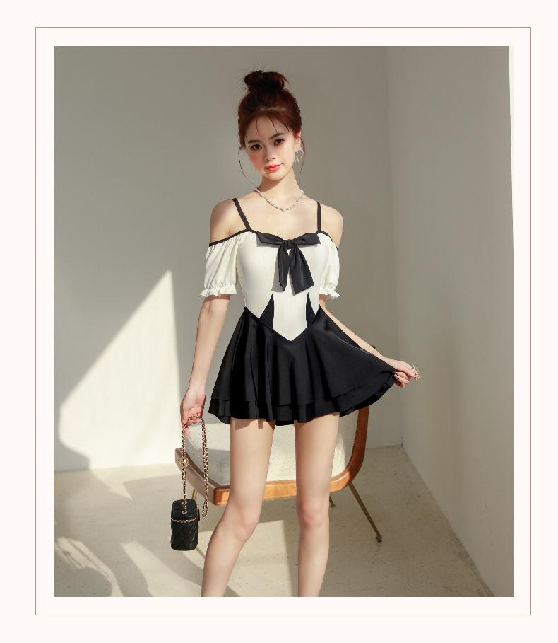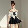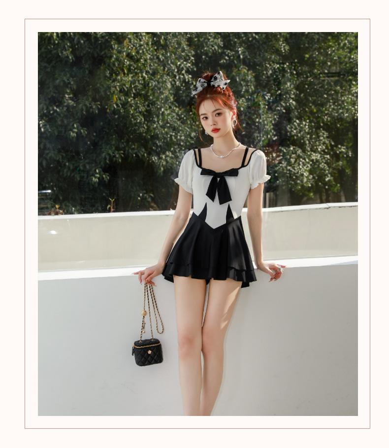 Traje de baño de hadas 2025 para mujer, traje de baño conservador de una pieza tipo bóxer que adelgaza y cubre el vientre, traje sexy coreano, traje de baño para estudiante