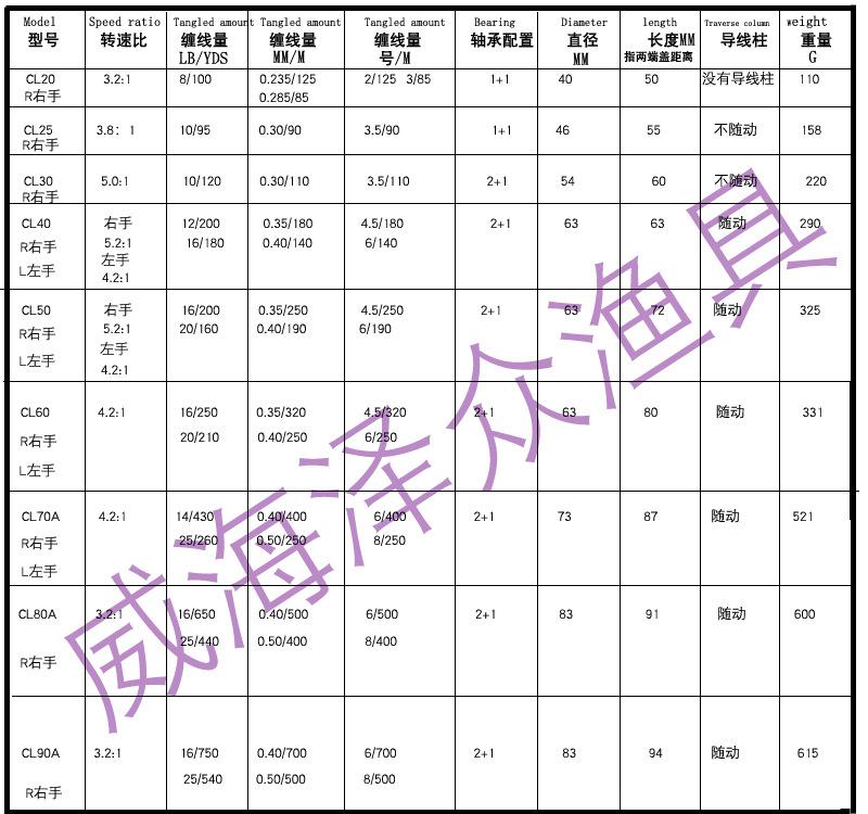 CL40 left hand, CL40 right hand, CL50 left hand, CL50 right hand, CL60 left hand, CL60 right hand, CL70A right...