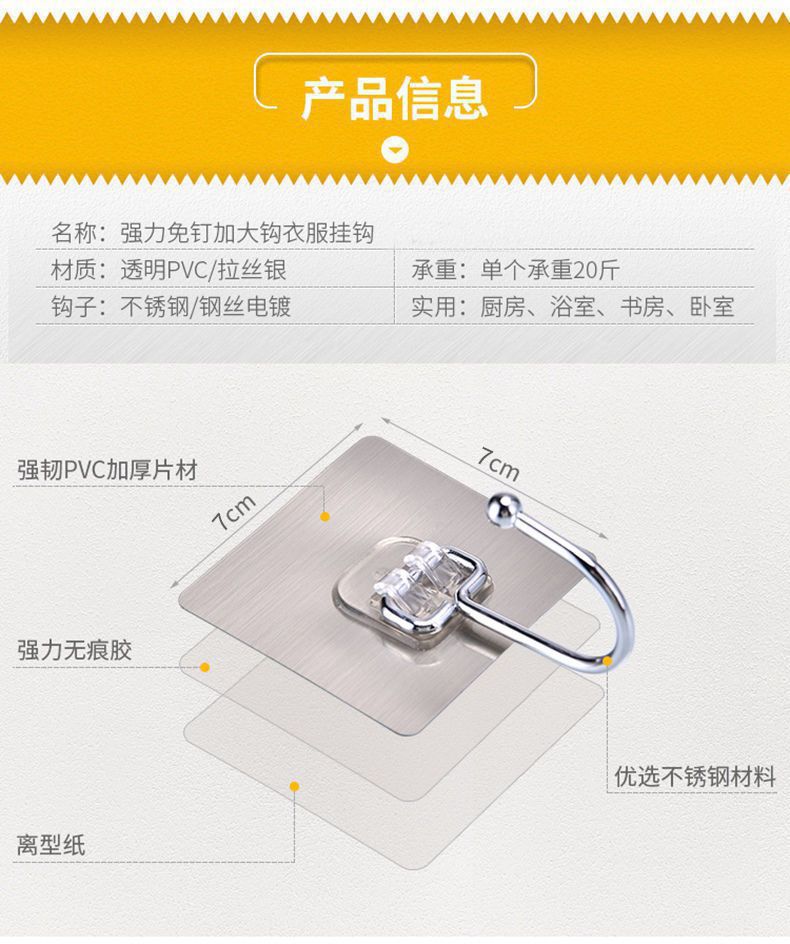 Gancho de acero inoxidable grande sin perforaciones multifunción para puerta, pared trasera, gancho adhesivo fuerte, gancho para baño, dormitorio, cocina