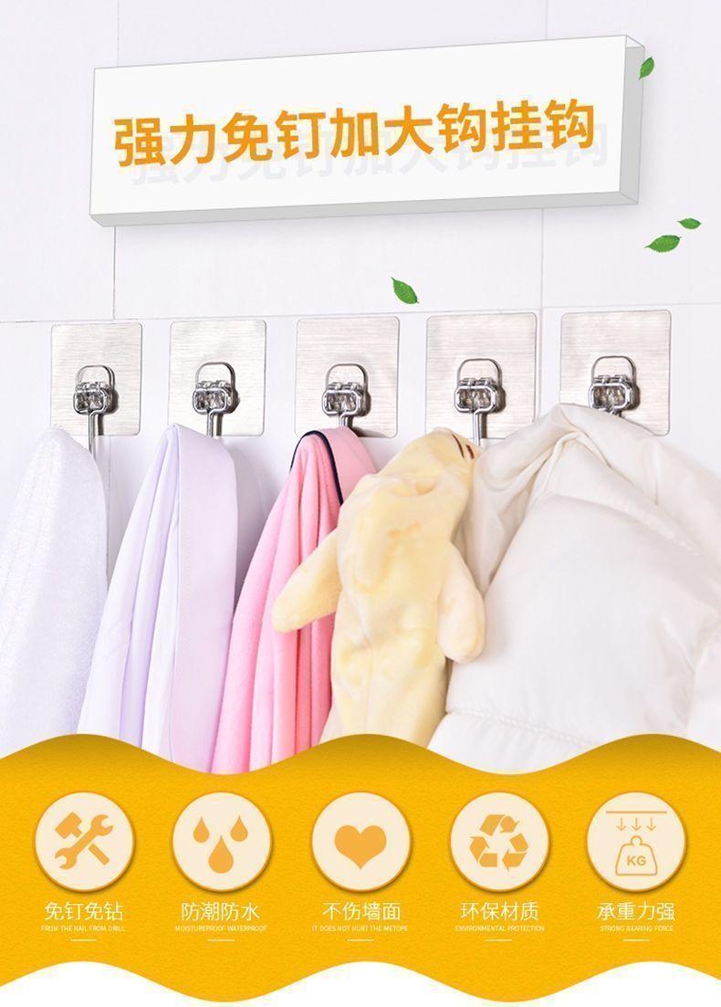 Gancho de acero inoxidable grande, sin perforaciones, multifuncional, para puerta, pared, gancho adhesivo fuerte, para baño, dormitorio, cocina