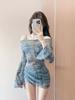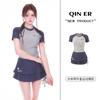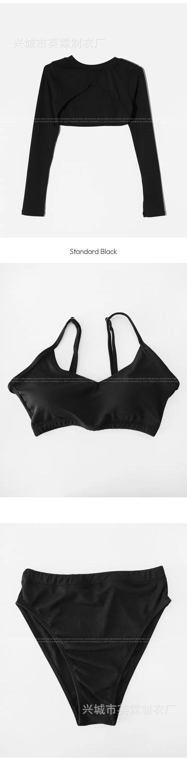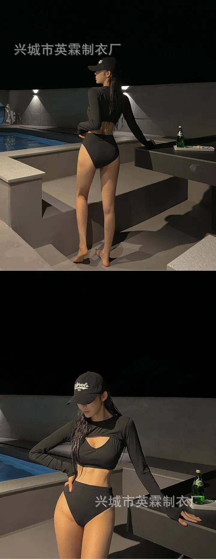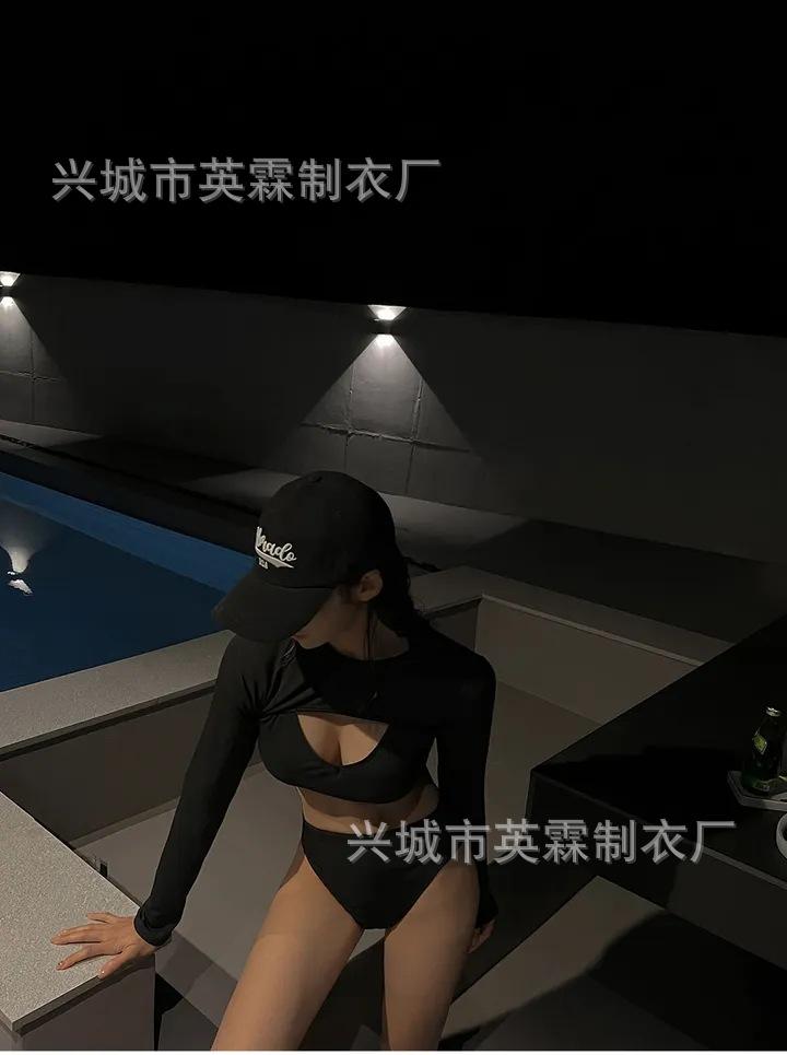 Nuevo traje de baño conservador de tres piezas de color sólido estilo coreano simple de manga larga para mujer que cubre el vientre de cintura alta para aguas termales 2024
