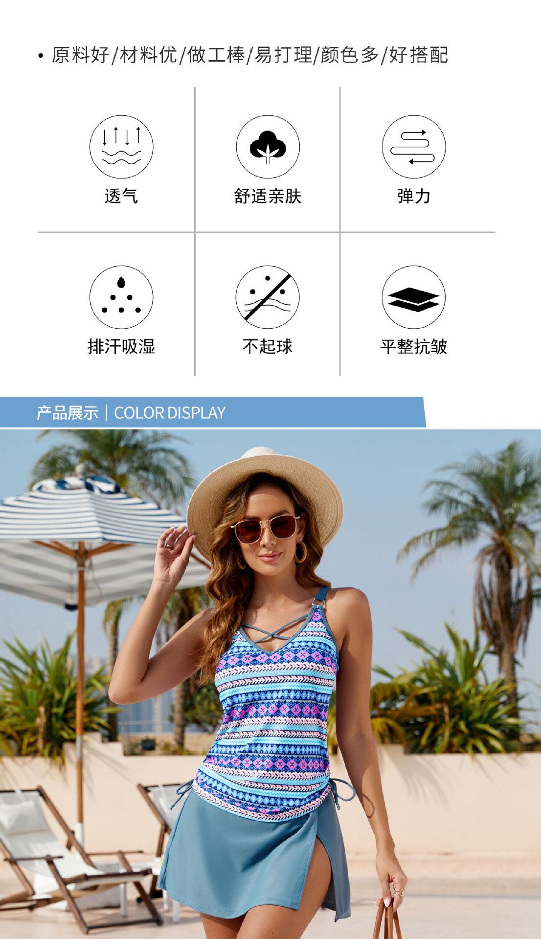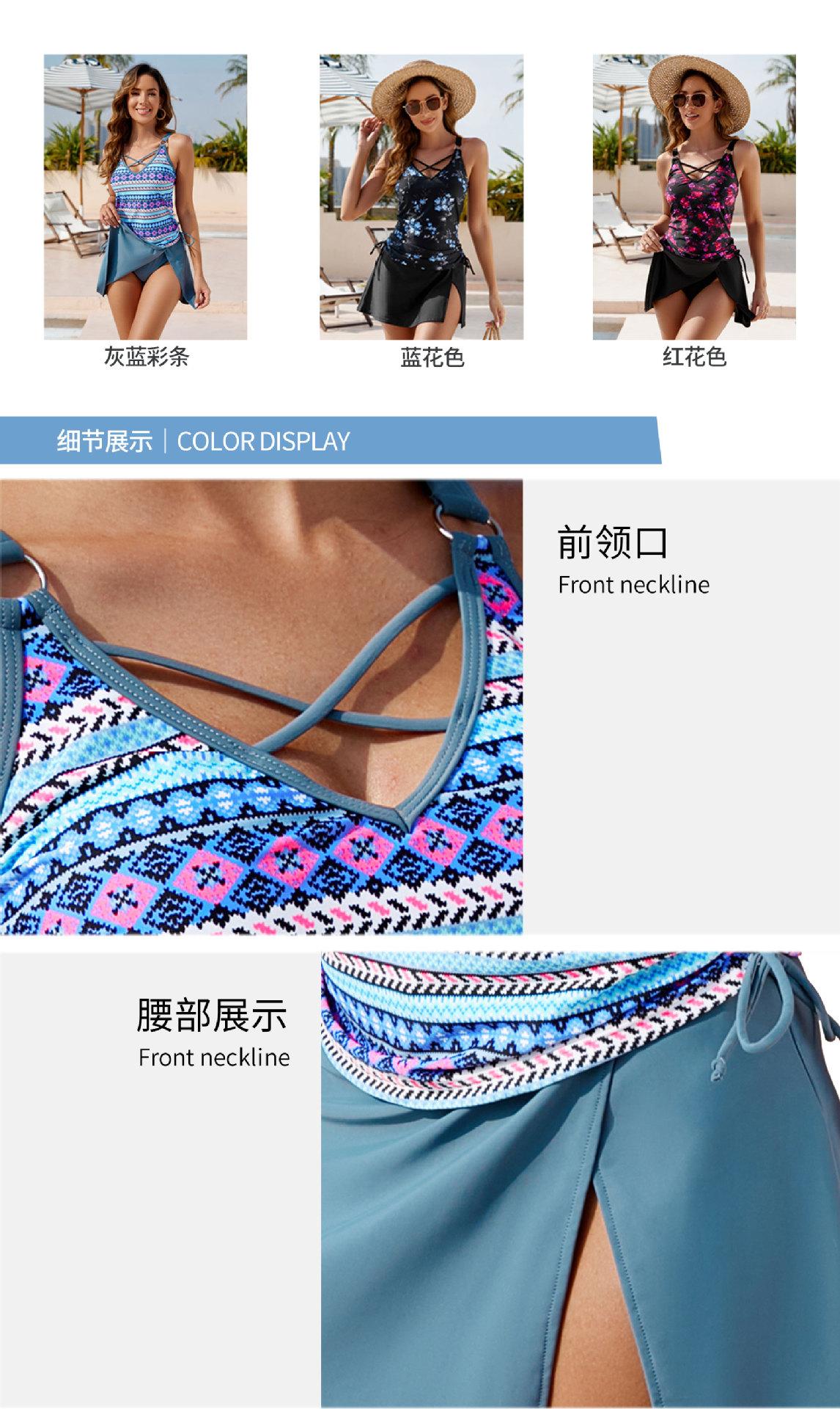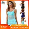 Traje de baño nuevo de dos piezas para mujer 2024 Estilo europeo Conservador Cubre abdomen Estampado Falda corta Bikini Traje de baño de comercio exterior