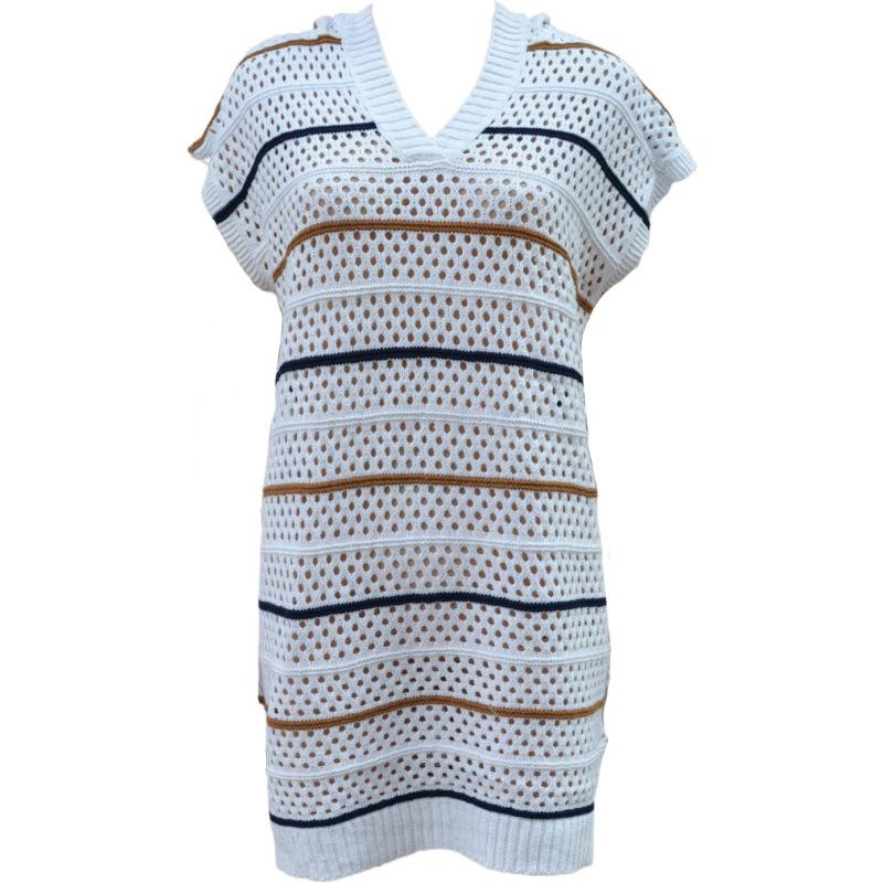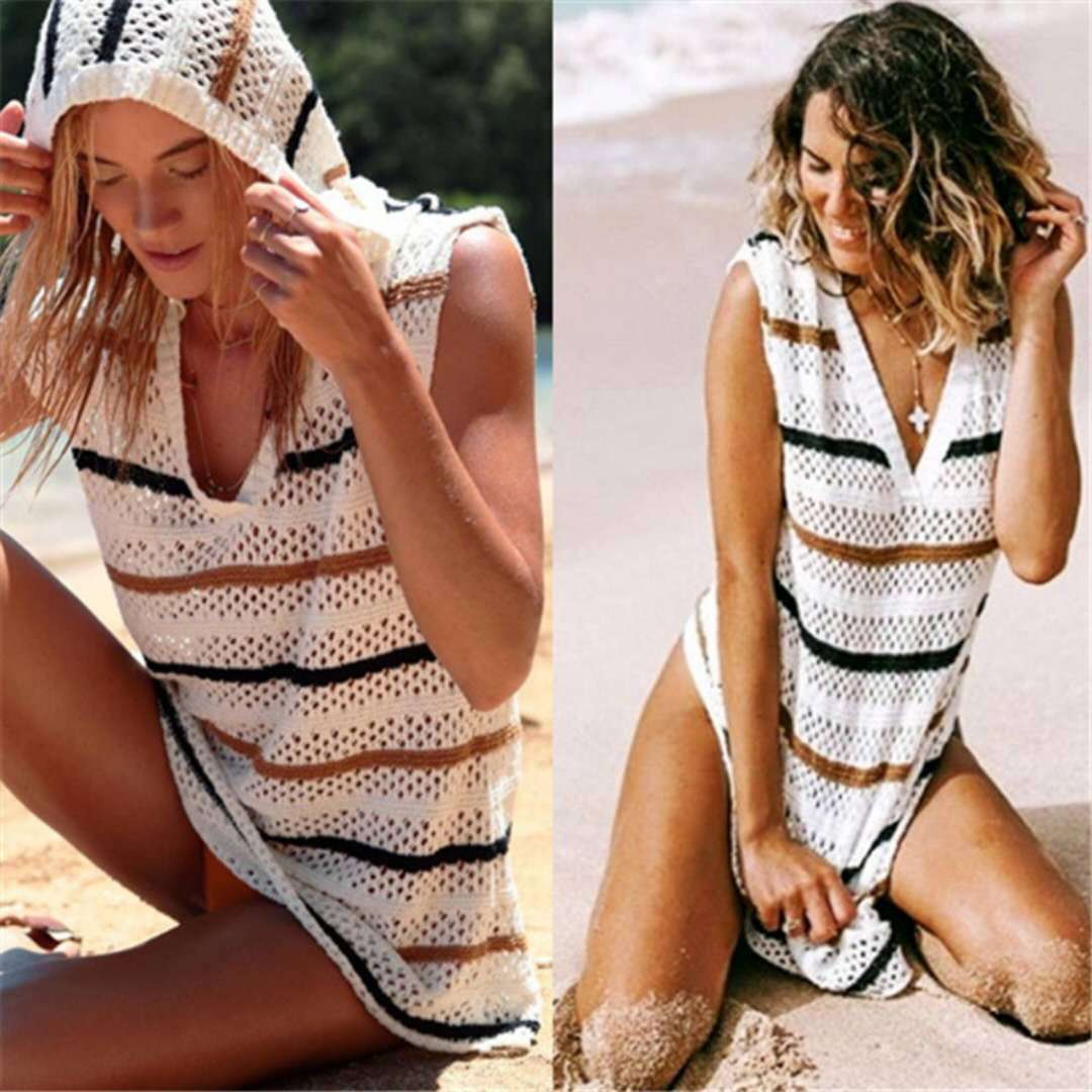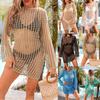 AliExpress Bikini de playa bohemio con costuras, algodón y lino, ganchillo a mano calado, manga larga, blusa con cuello en V, una pieza, dropshipping