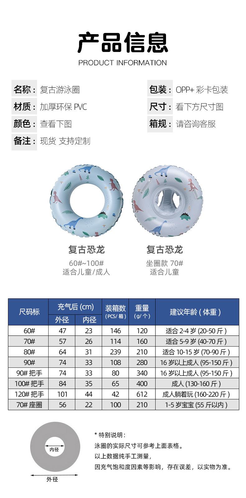 Anillo de natación nuevo de fábrica 6-12 años pequeño dinosaurio anillo de natación para axilas anillo de natación inflable engrosado venta al por mayor mixta