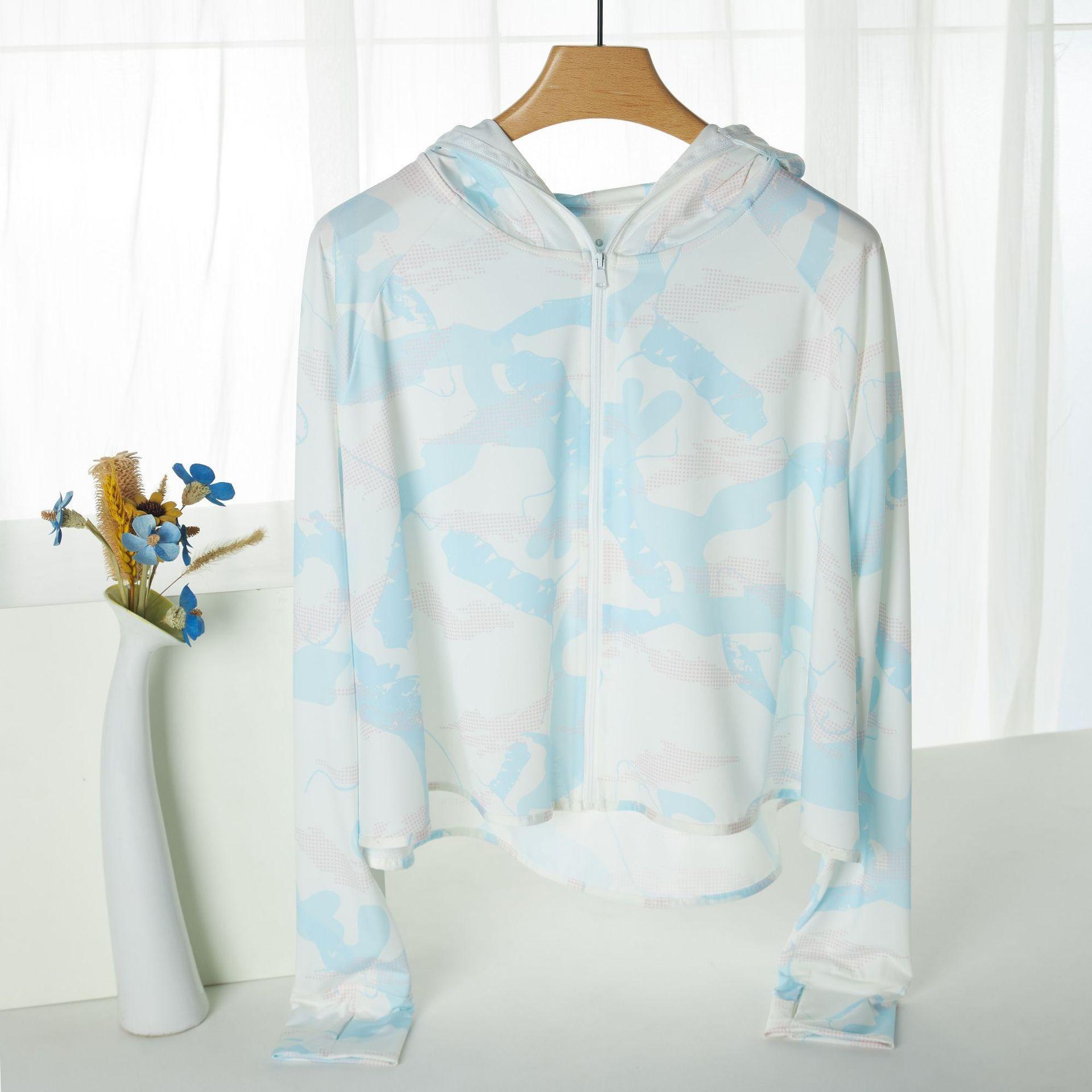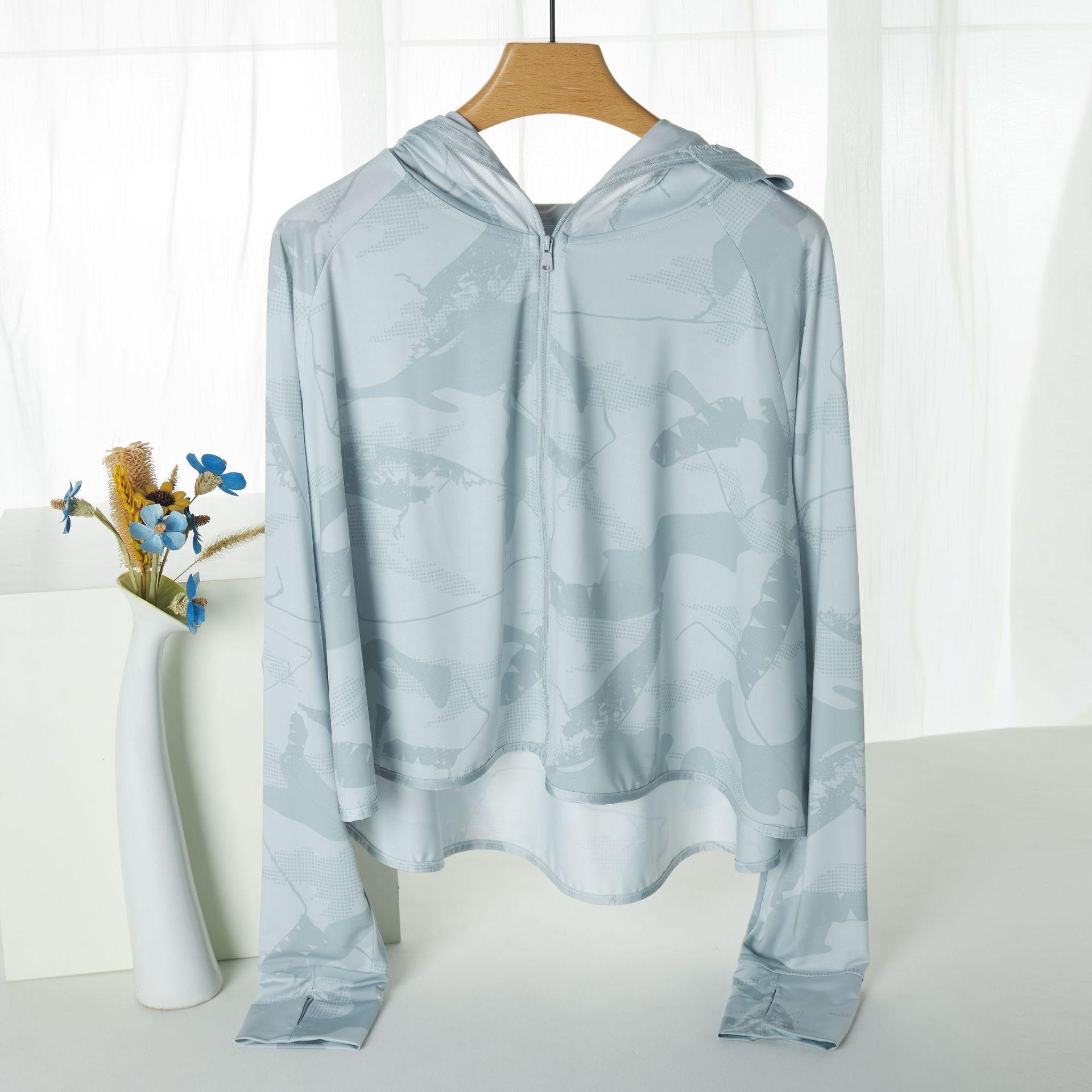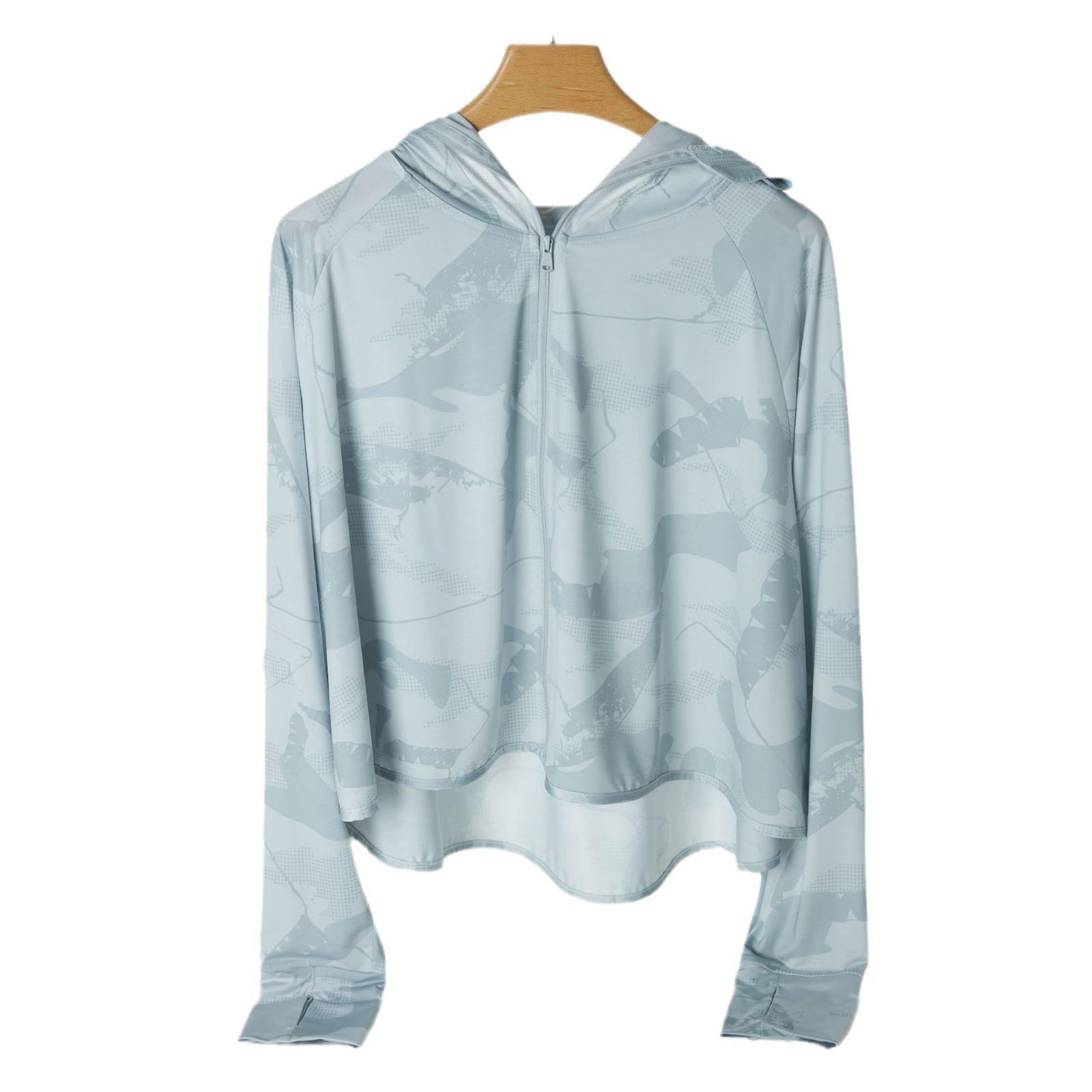 Ropa de Protección Solar de Seda de Hielo para Mujer Primavera y Verano Nuevo Elástico Colorido con Capucha Upf50+ Fino Transpirable de Secado Rápido Ropa de Protección Solar de Seda de Hielo