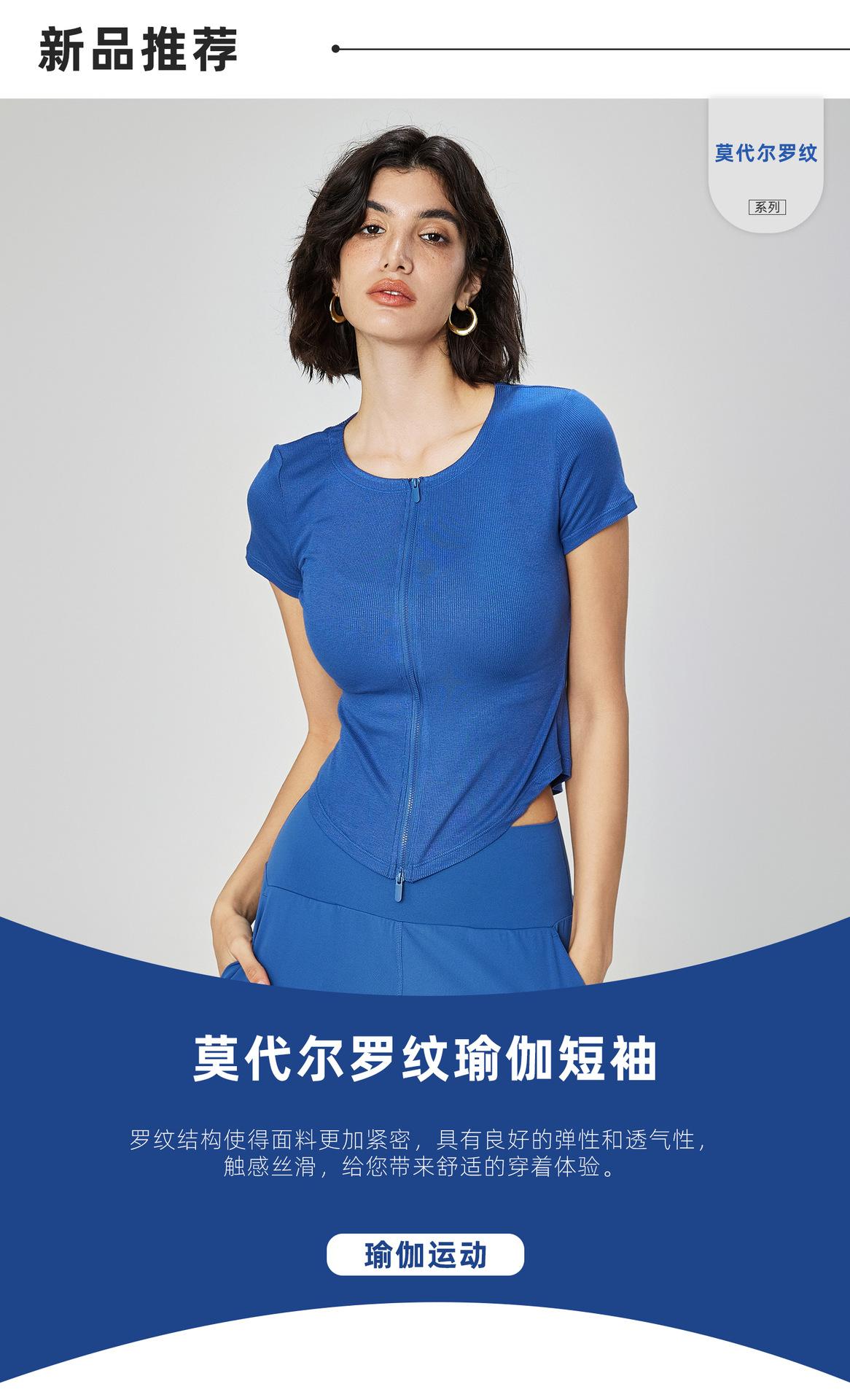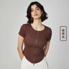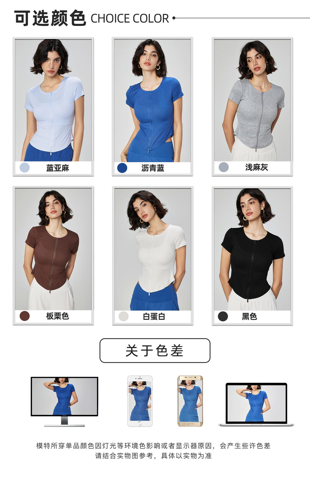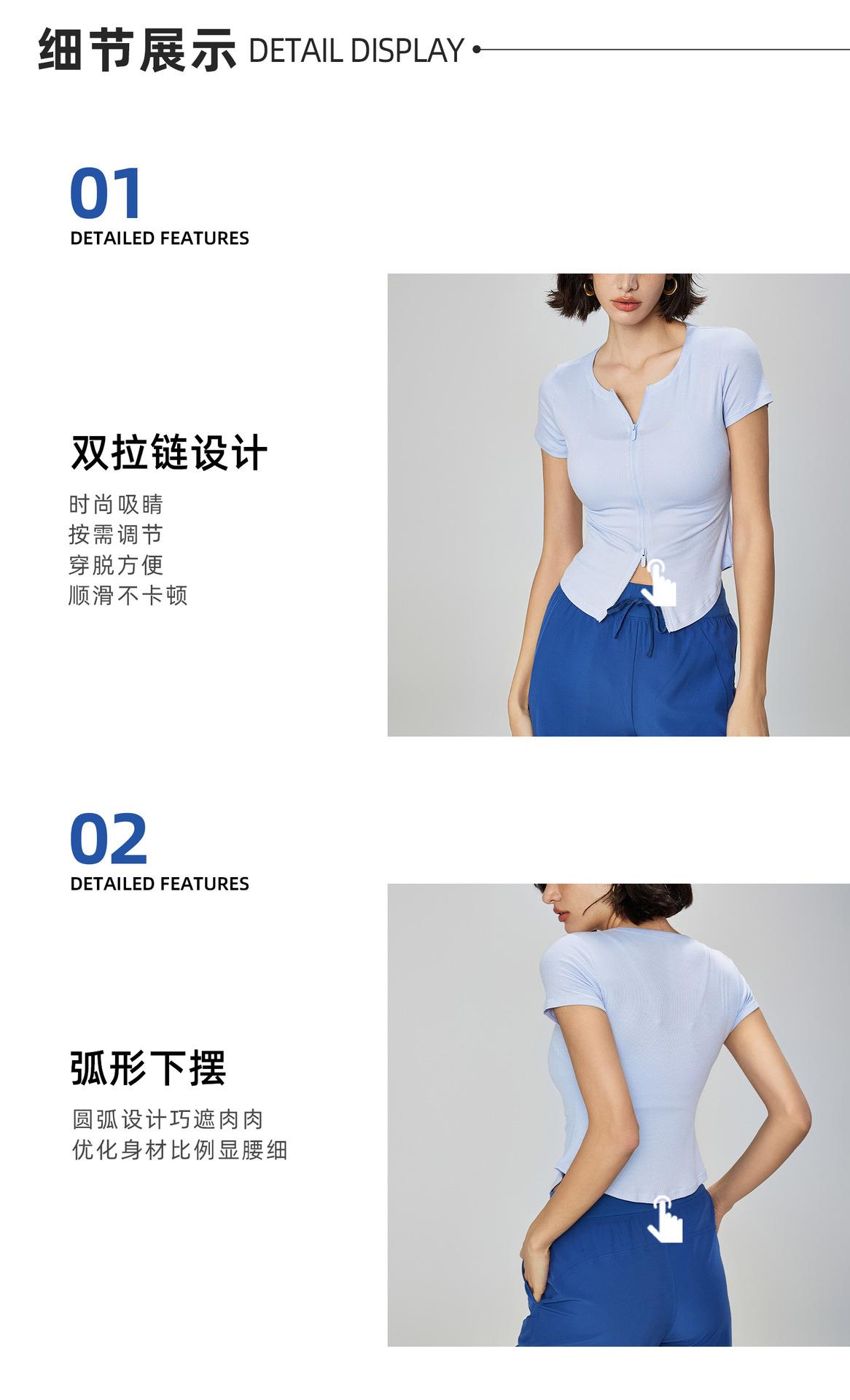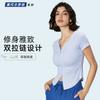 Traje de Yoga Nuevo de Primavera y Verano con Doble Cremallera para Mujer, Camiseta de Yoga de Cuello Redondo de Alta Gama, Ajustado, Adelgazante, Top Deportivo Nude