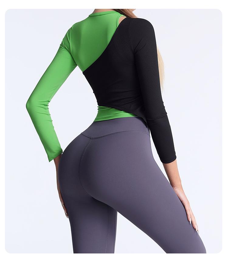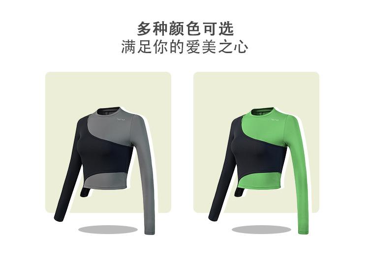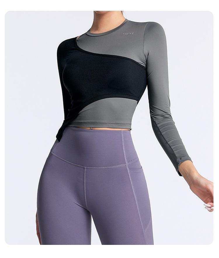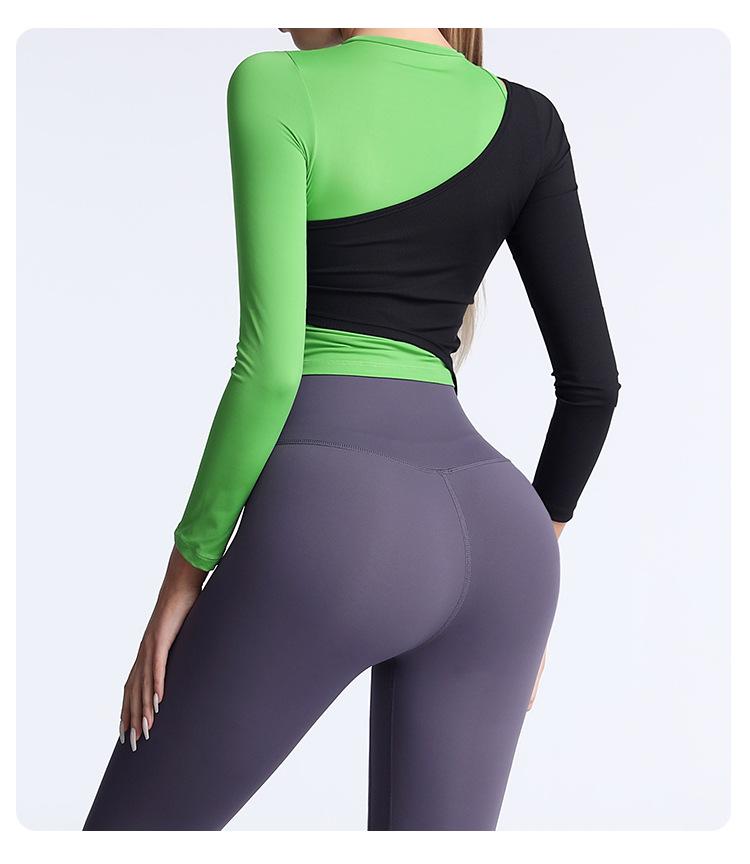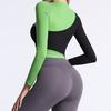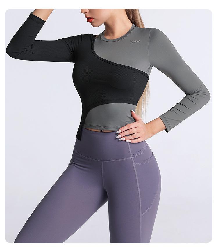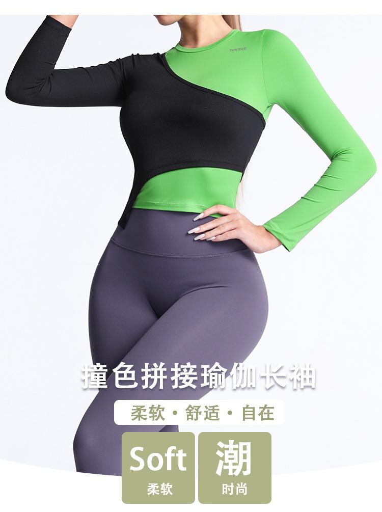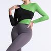Traje de yoga ajustado a juego de colores, traje de running de manga larga para mujer, top deportivo elástico, transpirable y de secado rápido para primavera y otoño.
