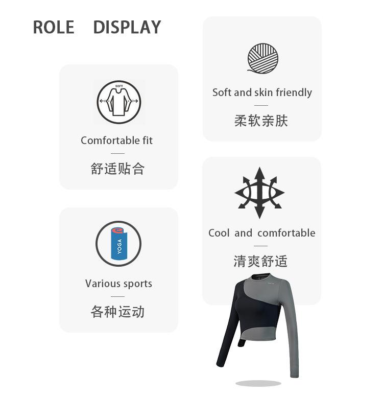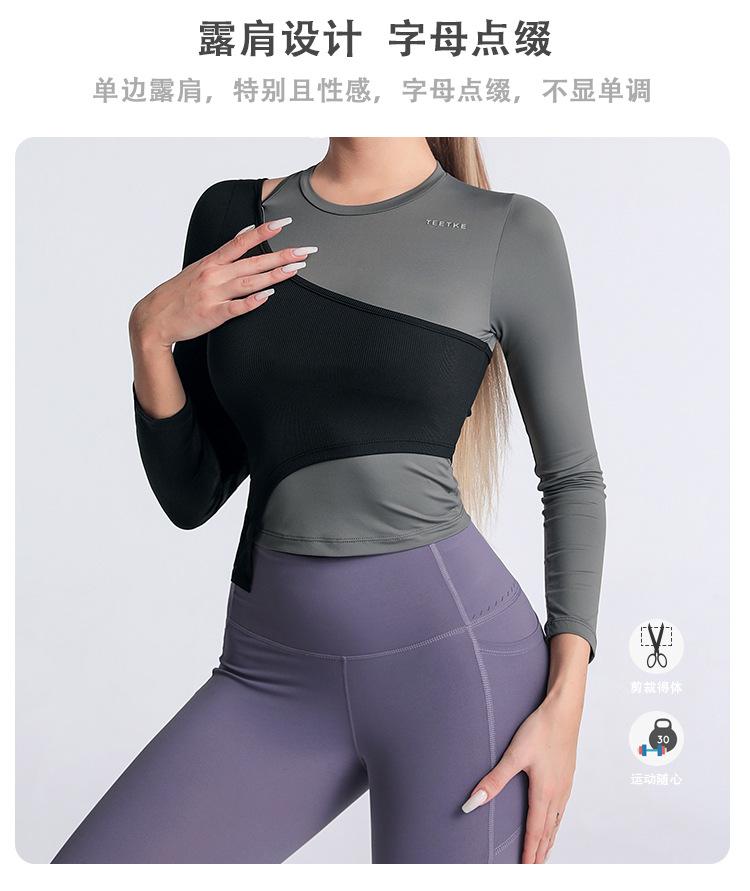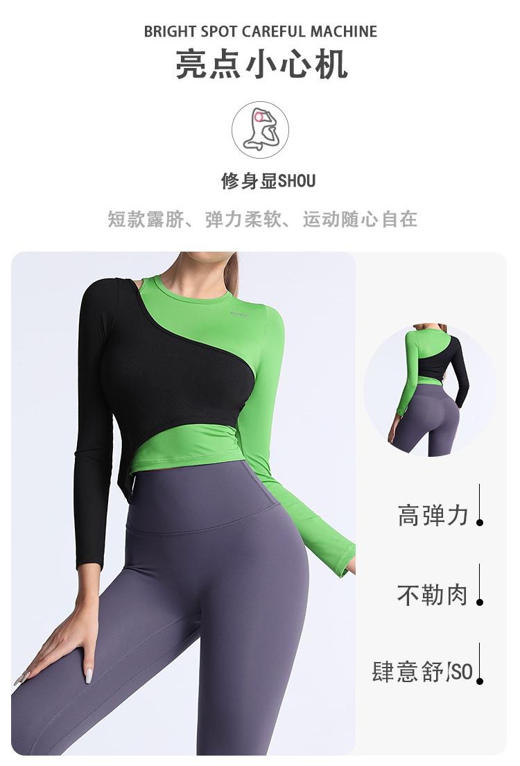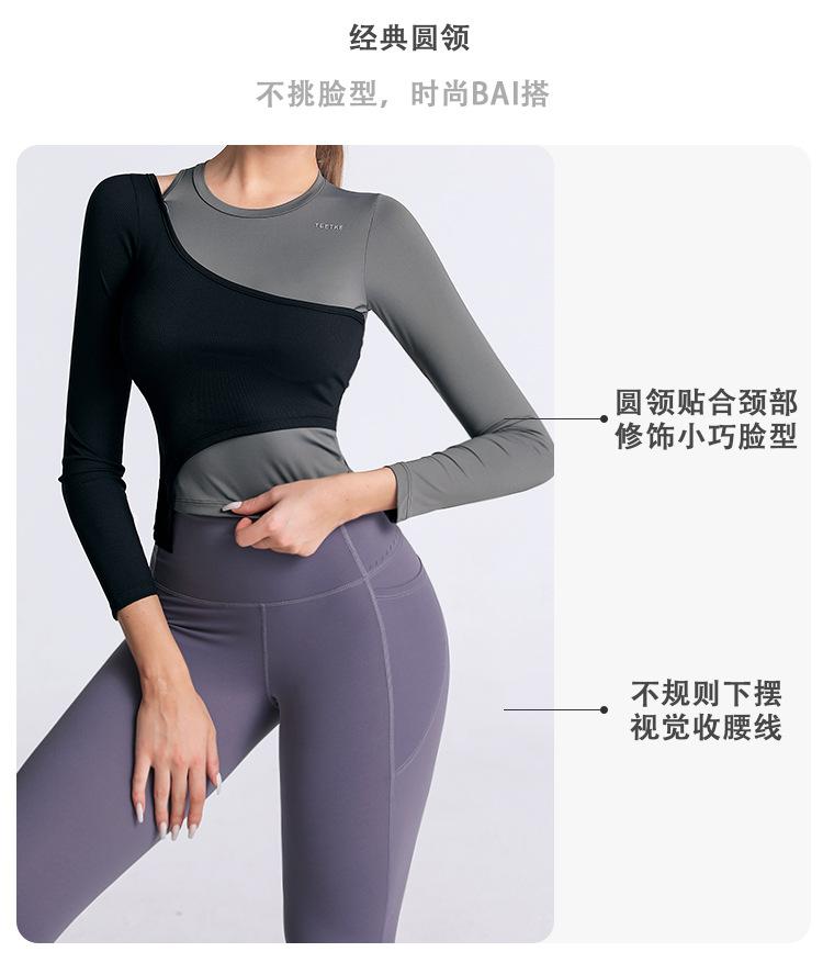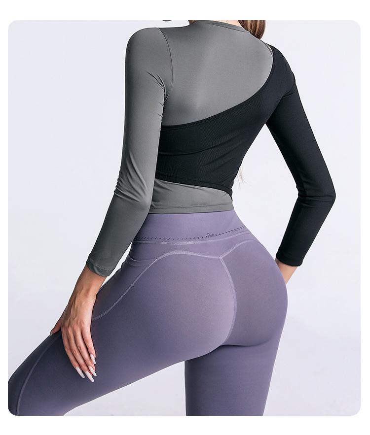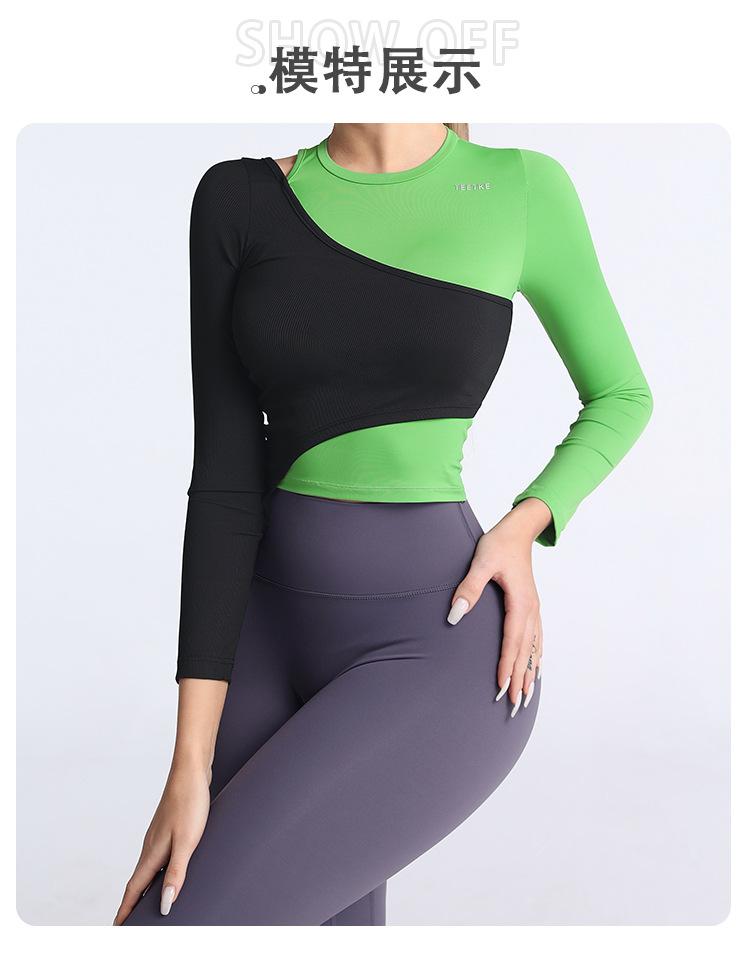 Traje de yoga ajustado a juego de colores, traje de running de manga larga para mujer, top deportivo elástico, transpirable y de secado rápido para primavera y otoño.