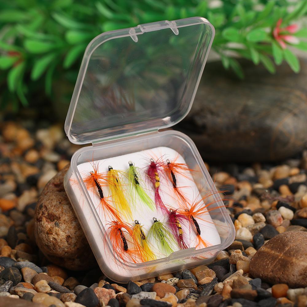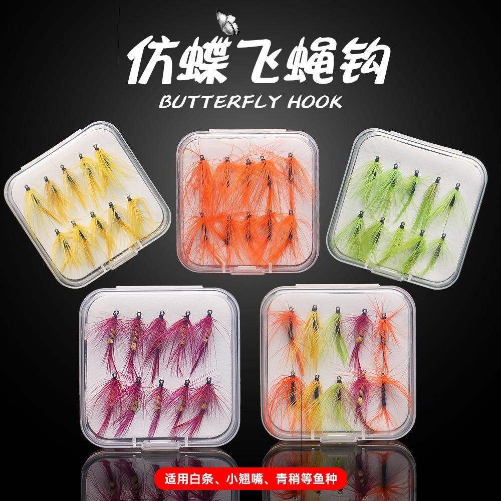 Anzuelo de mosca con cebo falso Luya de 10 px/caja, anzuelo de pluma de mariposa biónico con rayas blancas de agua dulce, cebo para perca con boca de caballo