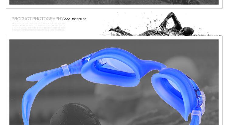 Fabricantes al por mayor de gafas de natación antivaho con galvanoplastia coloridas de alta definición con marco grande de silicona para miopía, los ojos izquierdo y derecho se pueden combinar.