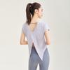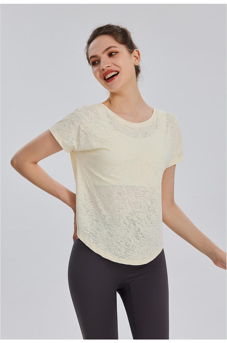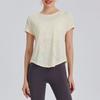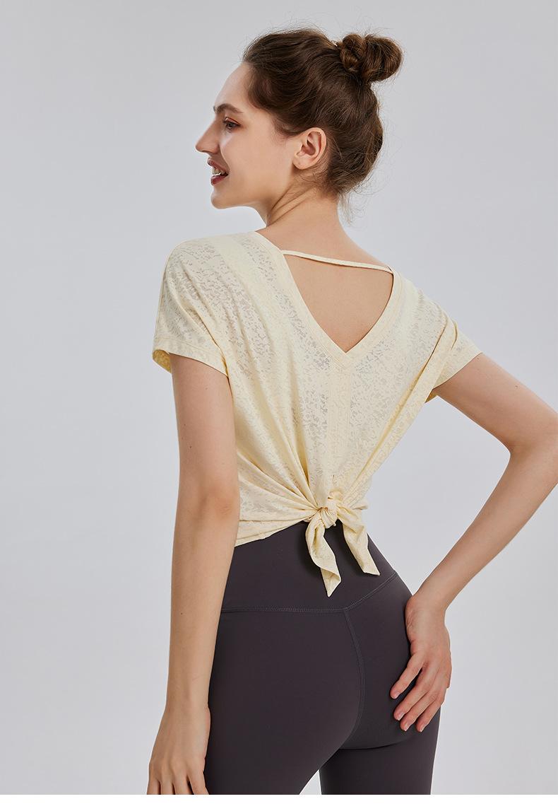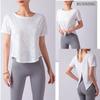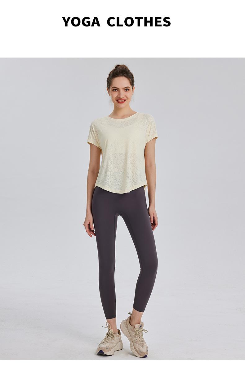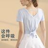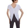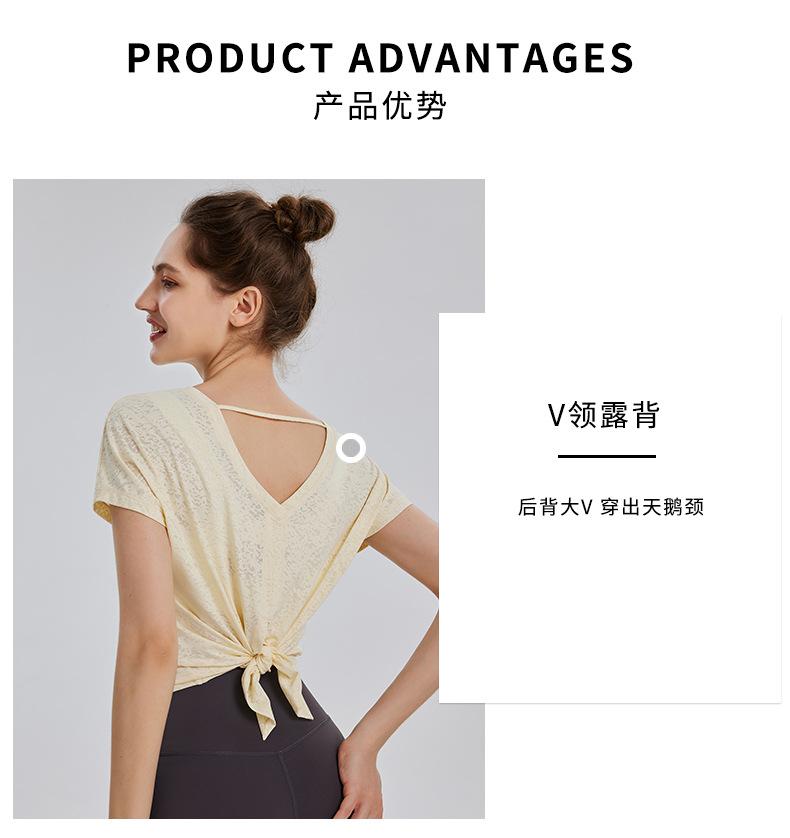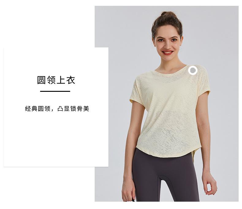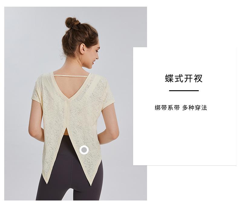 Ropa de yoga para mujer, blusa deportiva holgada de manga corta, ligera y transpirable, top de verano con espalda descubierta y abertura en jacquard, camiseta de fitness