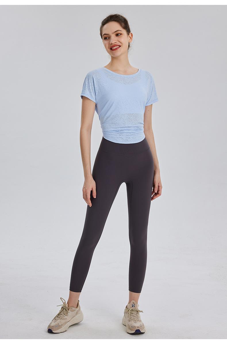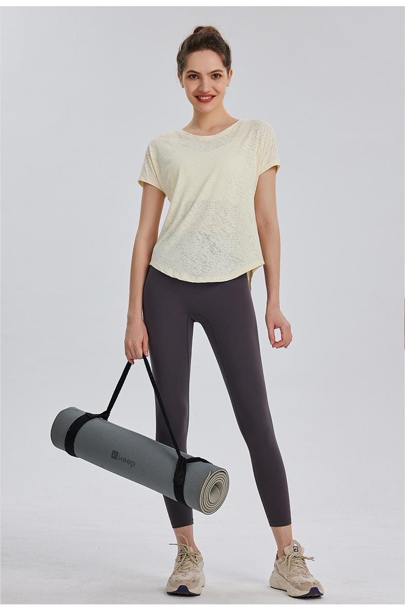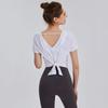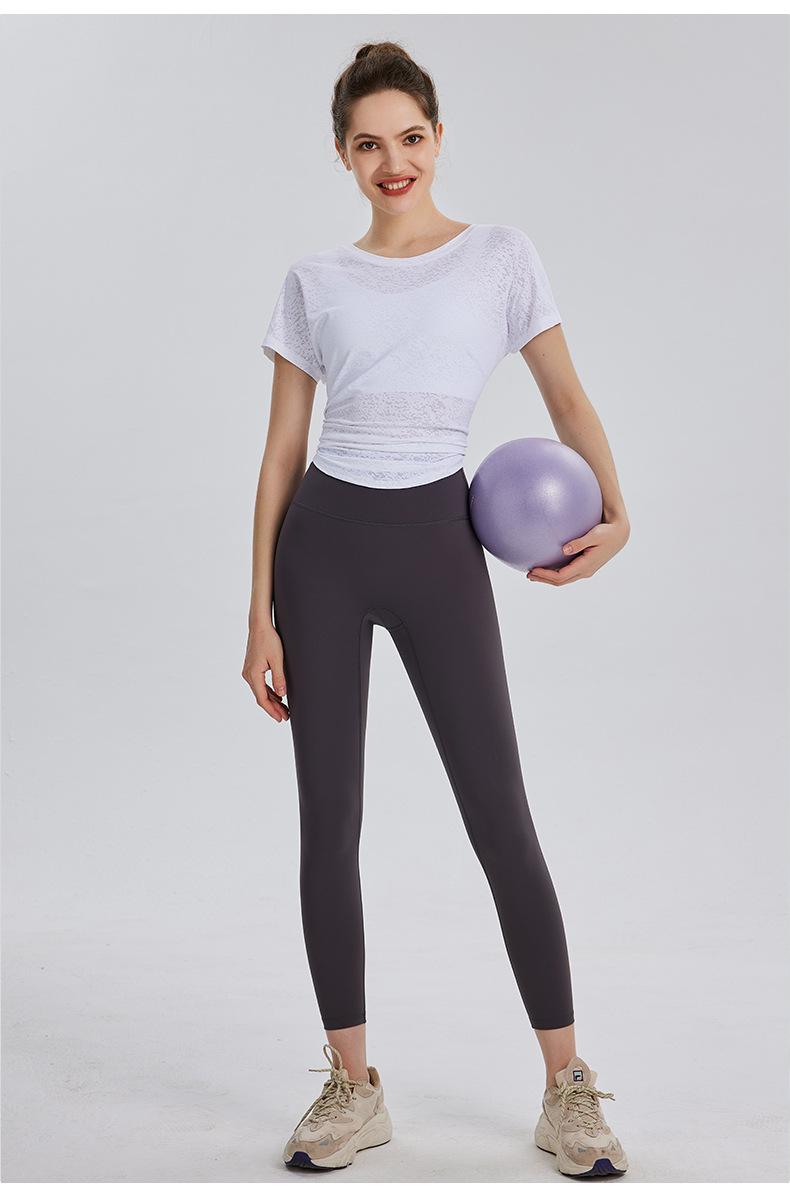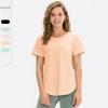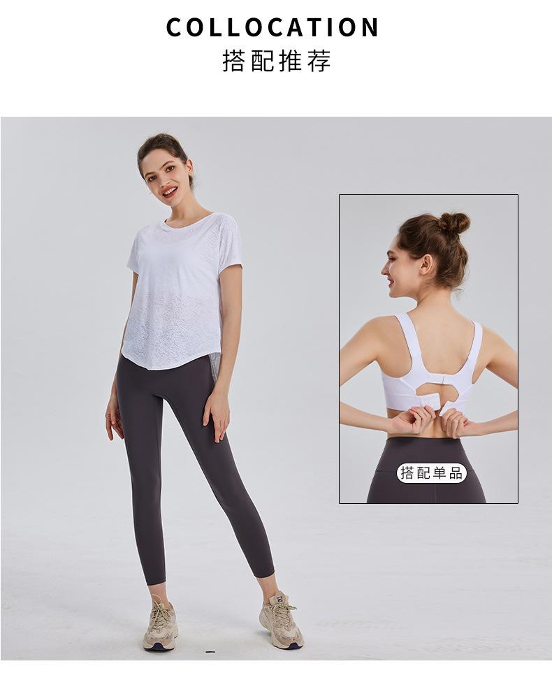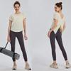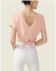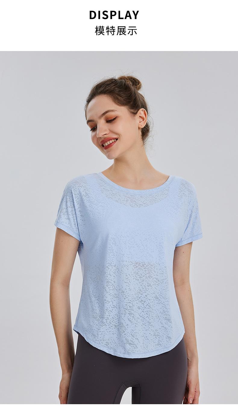 Ropa de yoga para mujer, blusa deportiva holgada de manga corta, ligera y transpirable, top de verano con espalda descubierta y abertura en jacquard, camiseta de fitness