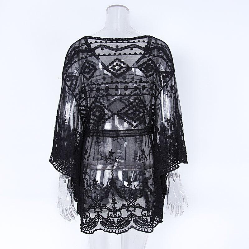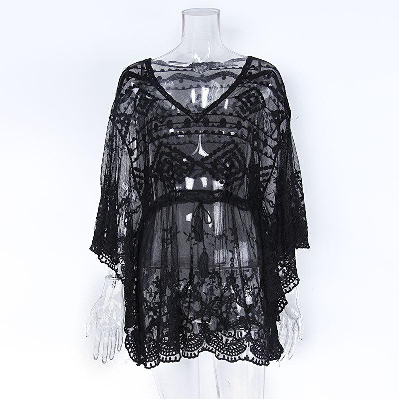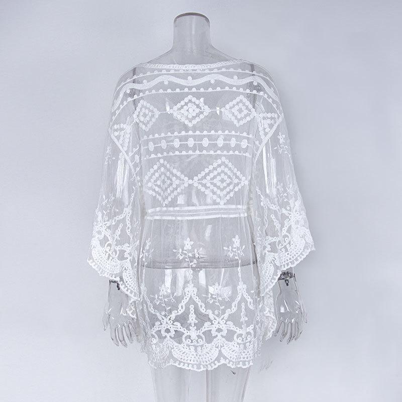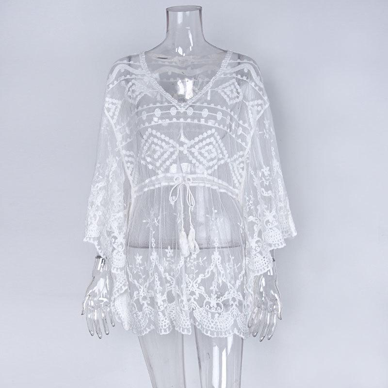 Vestido de playa de encaje estilo europeo y americano para mujer, sexy, sin espalda, con protección solar