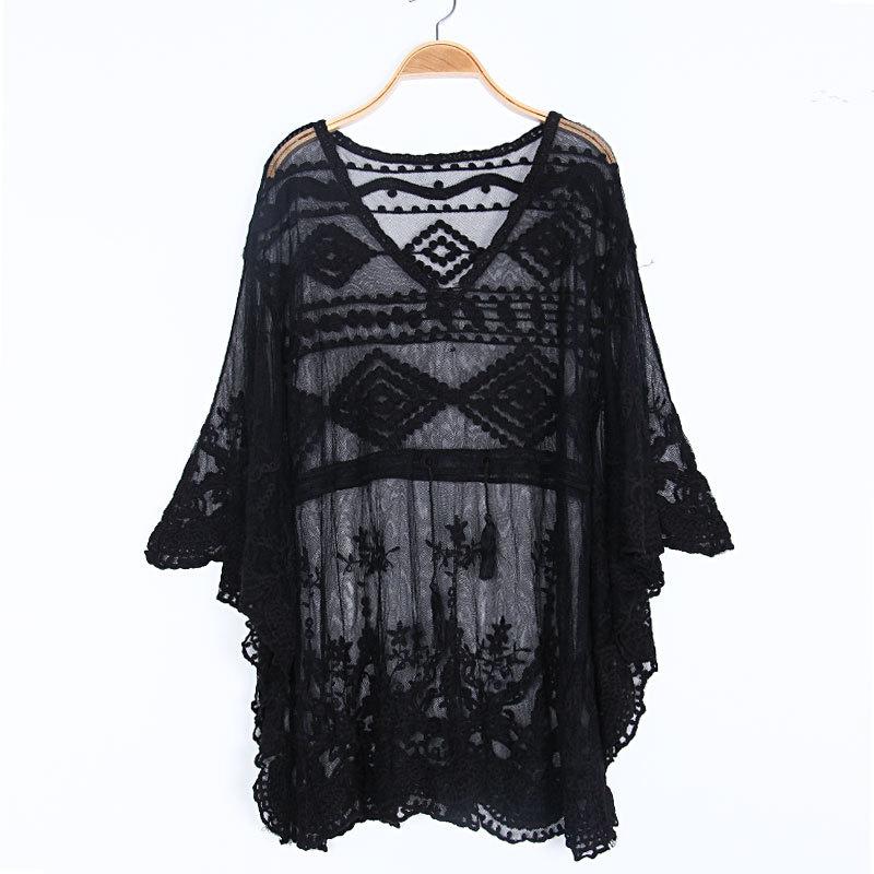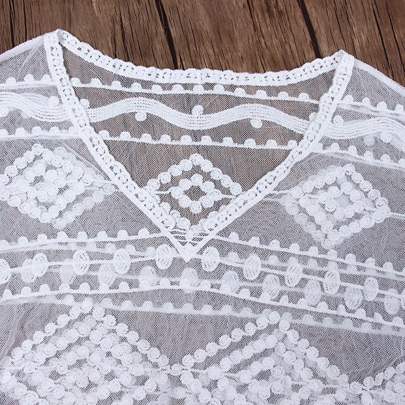 Blusa de encaje con cuello en V para deportes de playa al aire libre, nueva blusa de encaje europea y americana, fabricantes al por mayor
