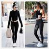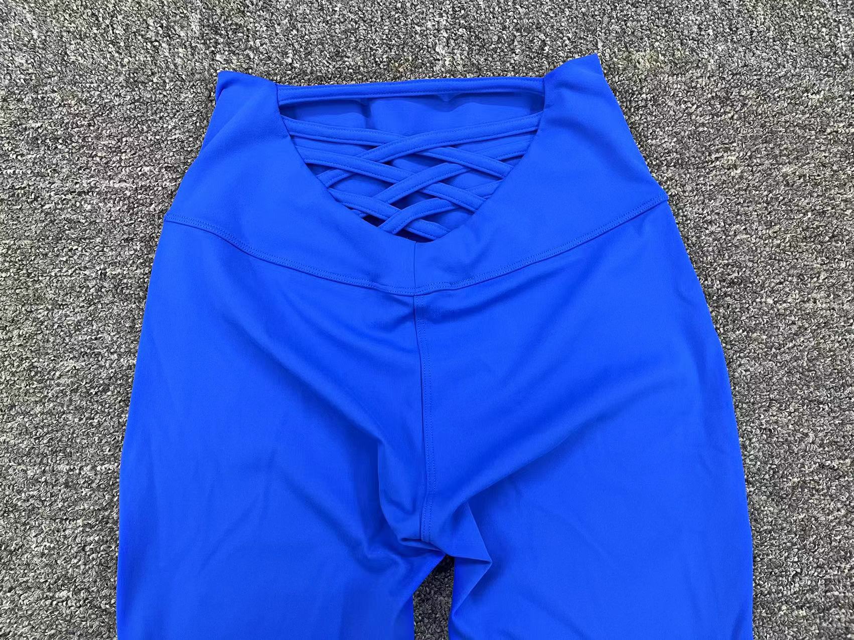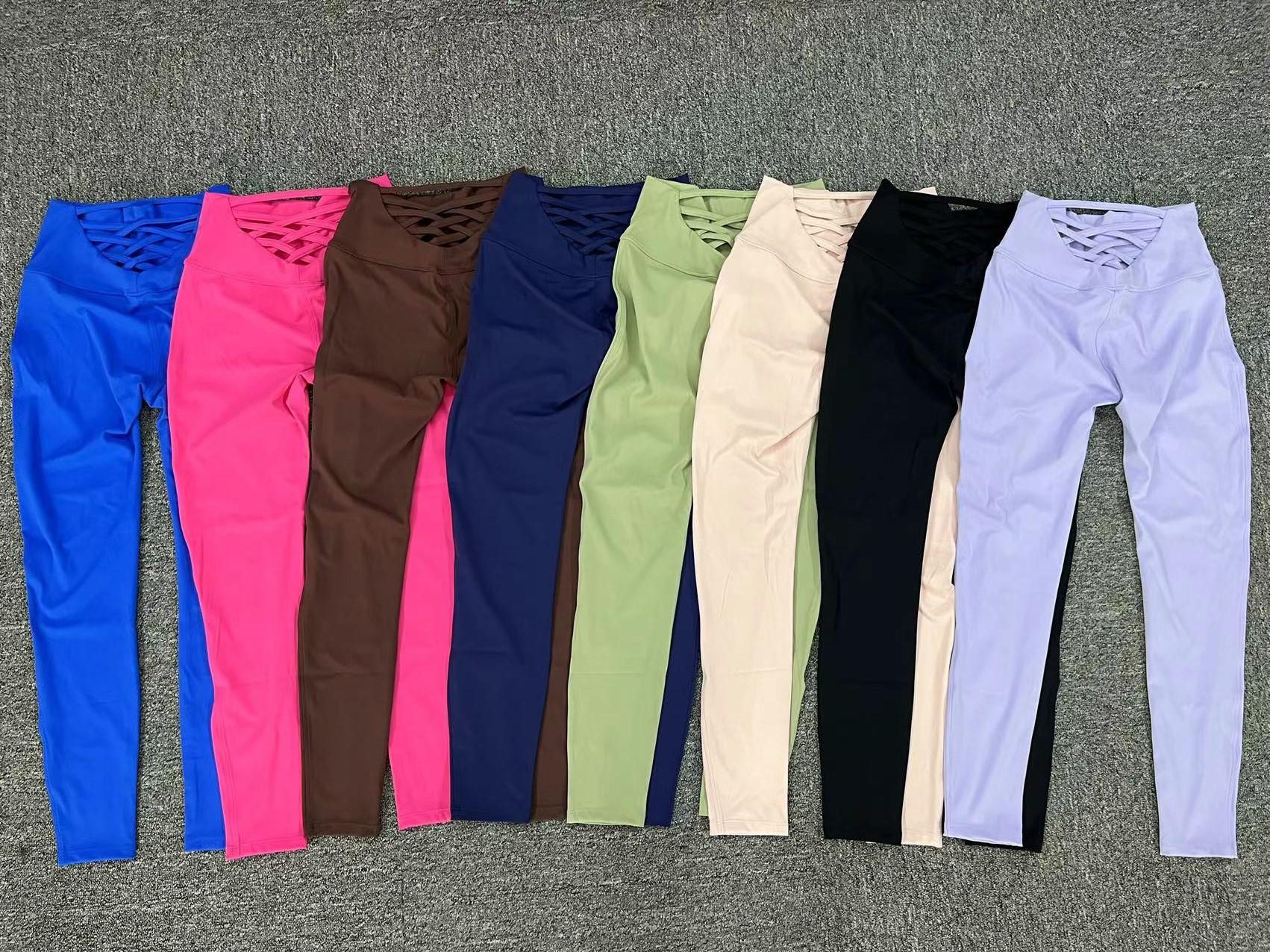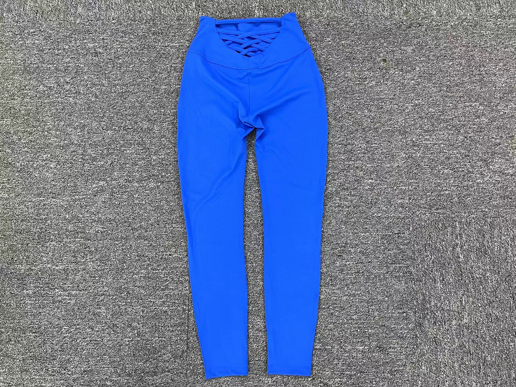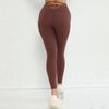Pantalones de yoga deportivos ajustados con cintura cruzada y huecos en la espalda, estilo europeo y americano, sin vergüenza, de línea melocotón y cadera.
