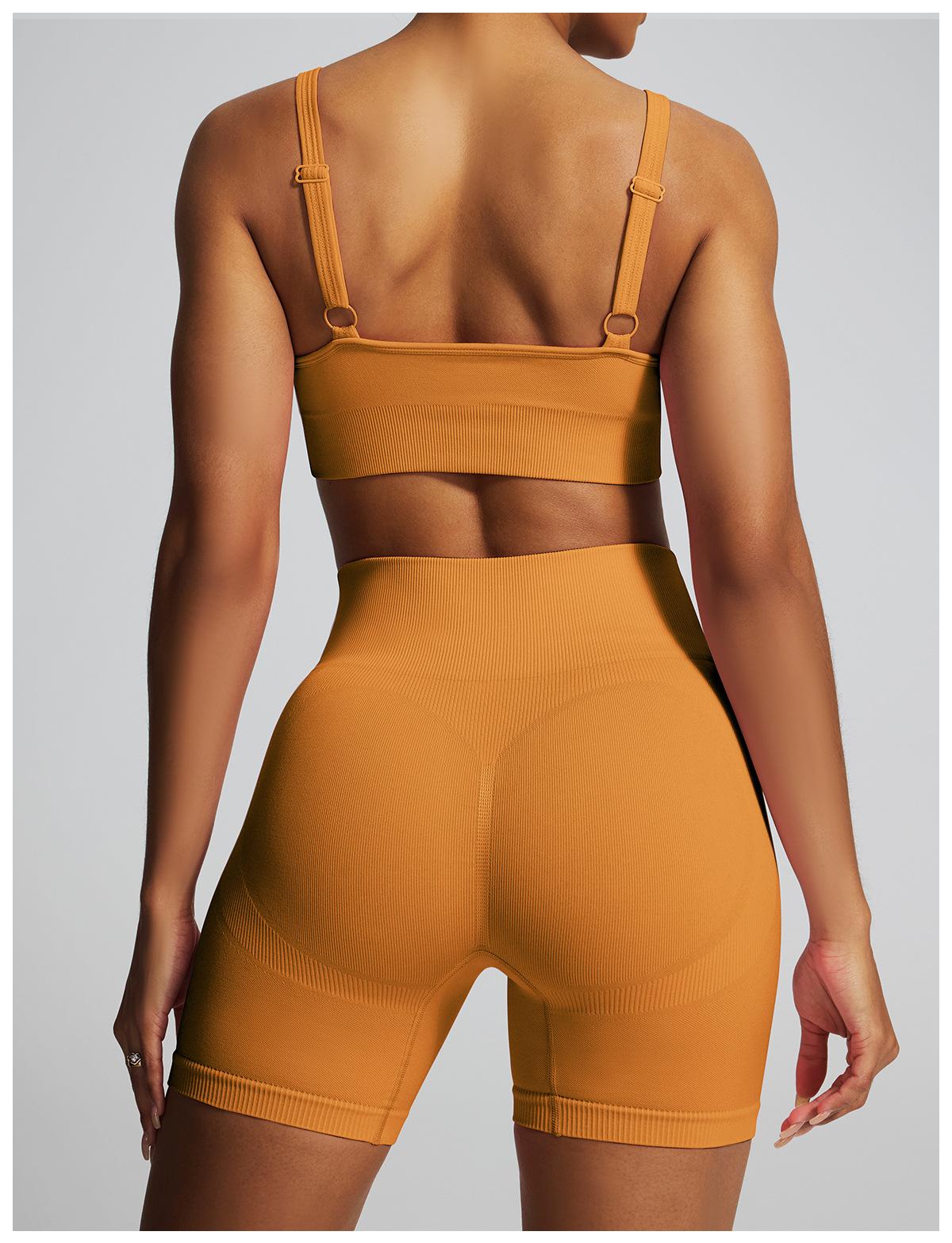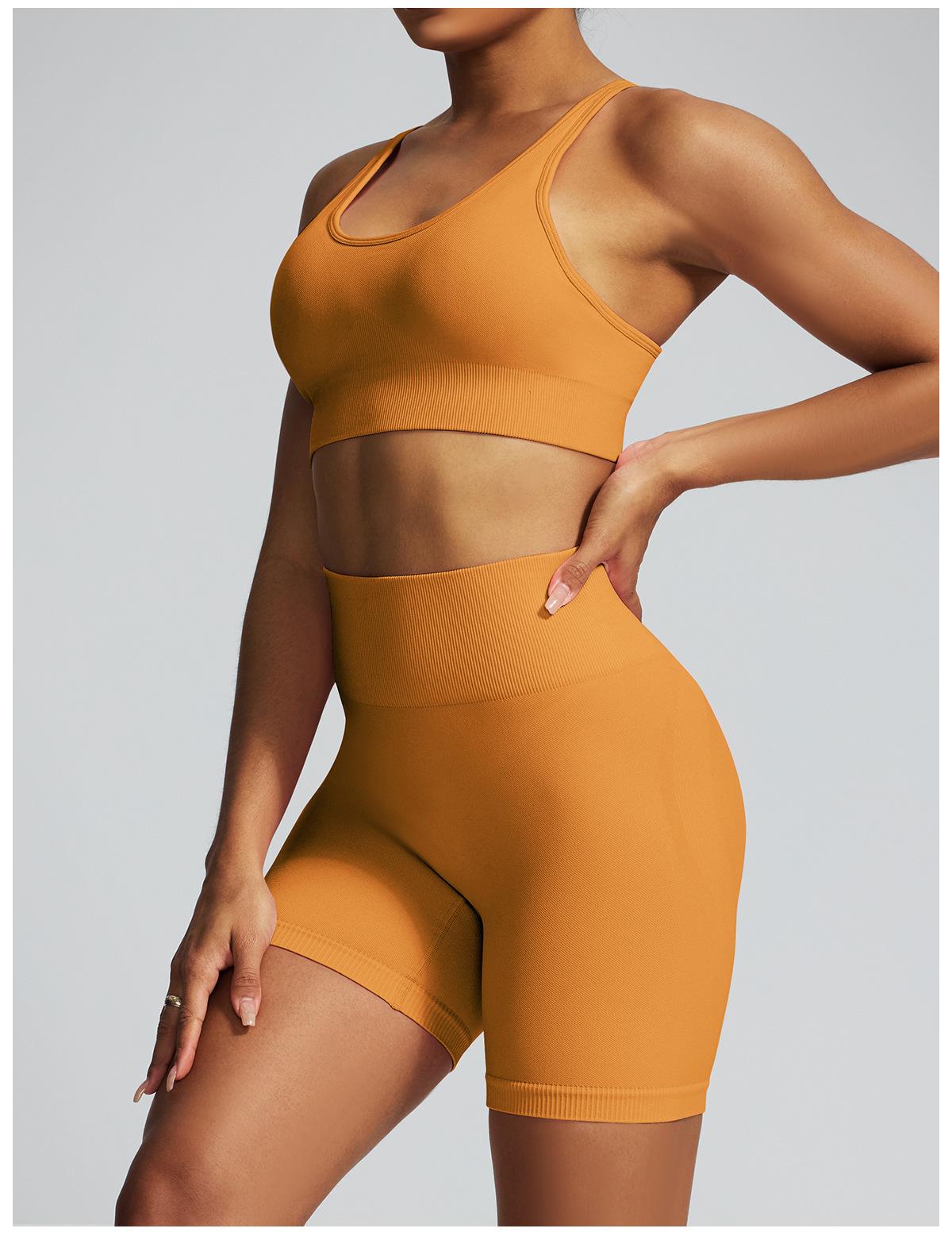 Sujetador Deportivo Tejido de Color Sólido Sin Costuras Transfronterizo Ropa Interior Pantalones de Yoga Running Deportes Fitness Conjunto de Ropa de Yoga