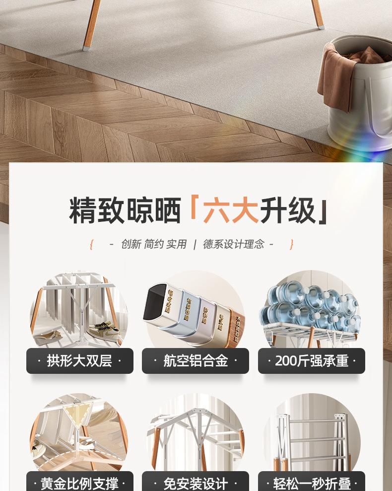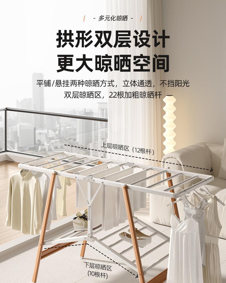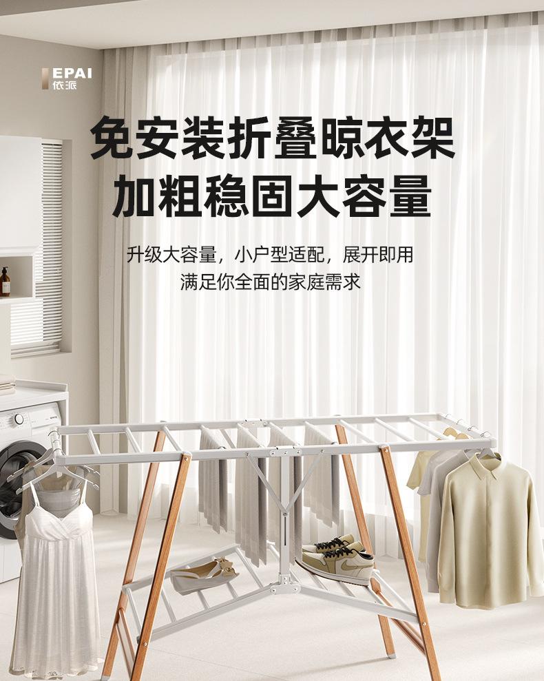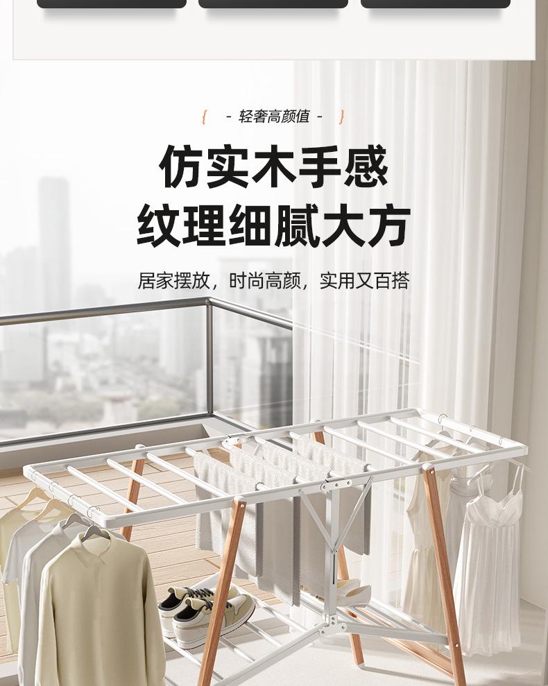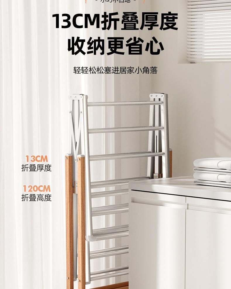Tendedero Vertical Plegable de Pie sin Instalación Grano de Madera