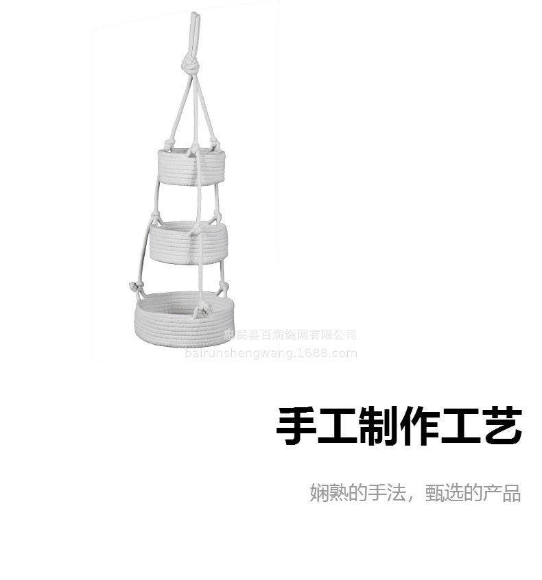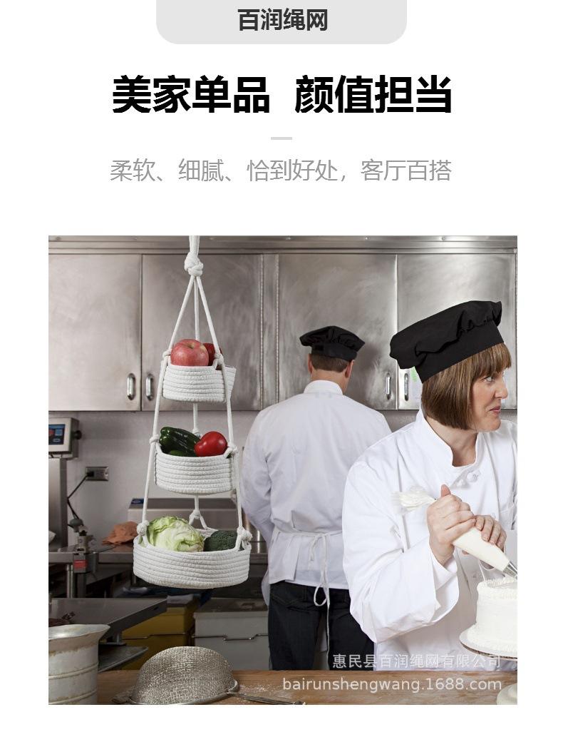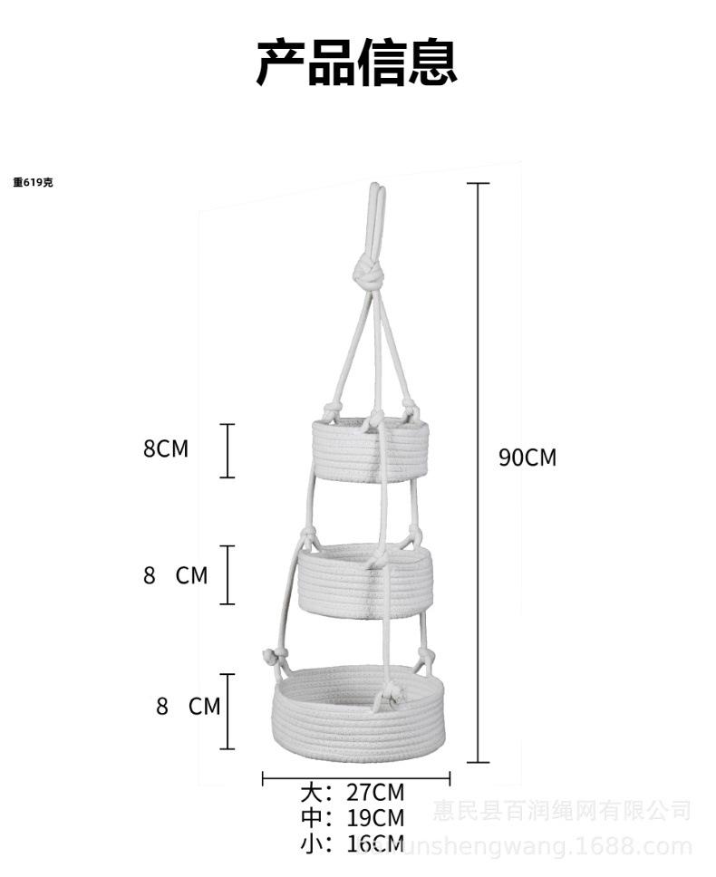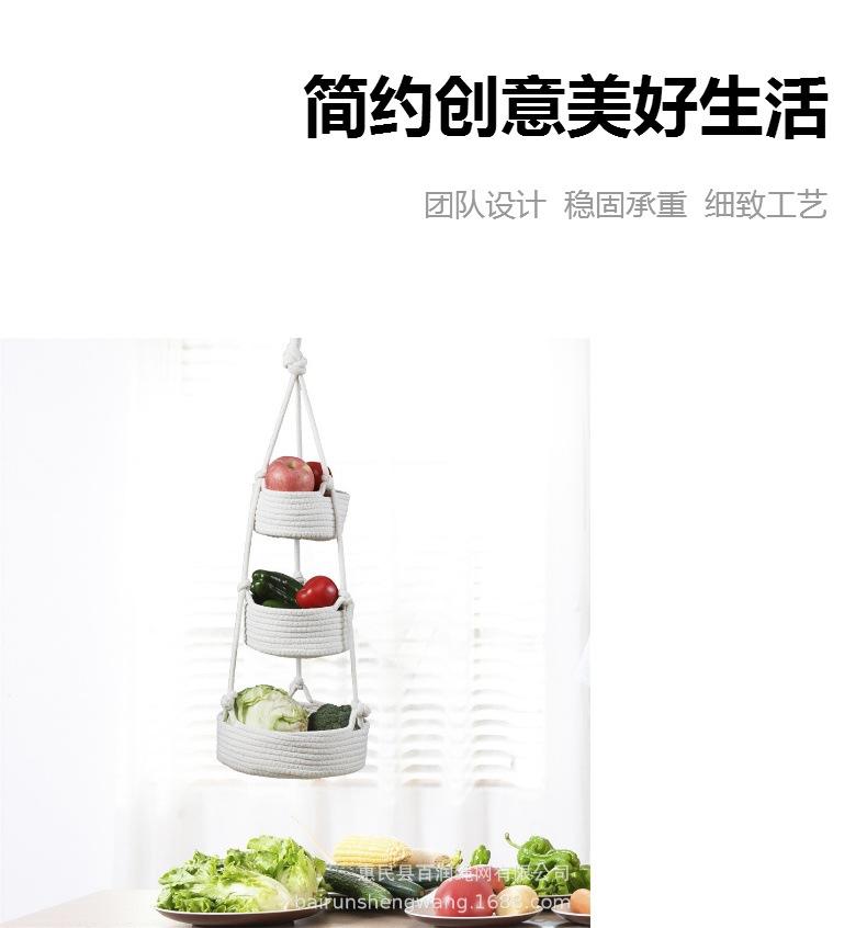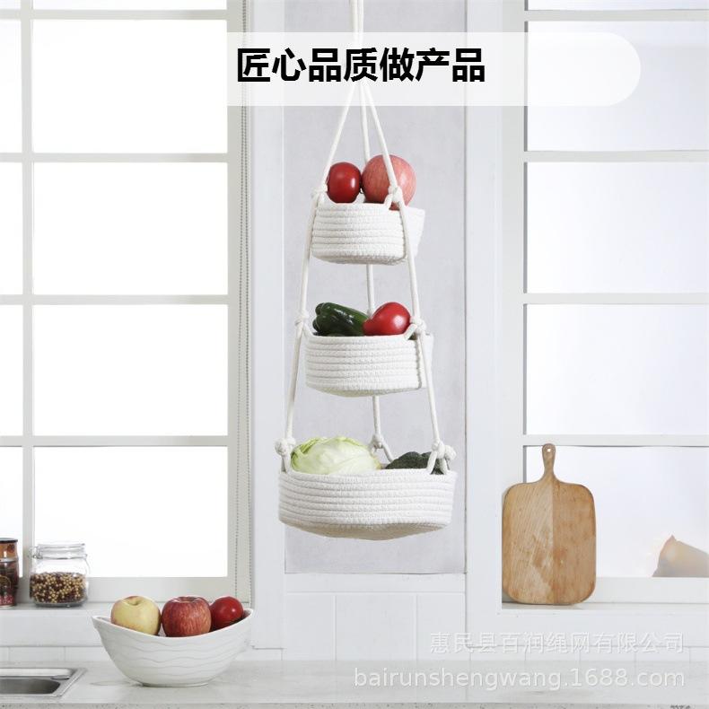 Cesta de almacenamiento creativa de estilo nórdico para decoración del hogar, cesta de tres capas para verduras y frutas, cesta de almacenamiento de cocina tejida con cuerda de algodón, cesta colgante