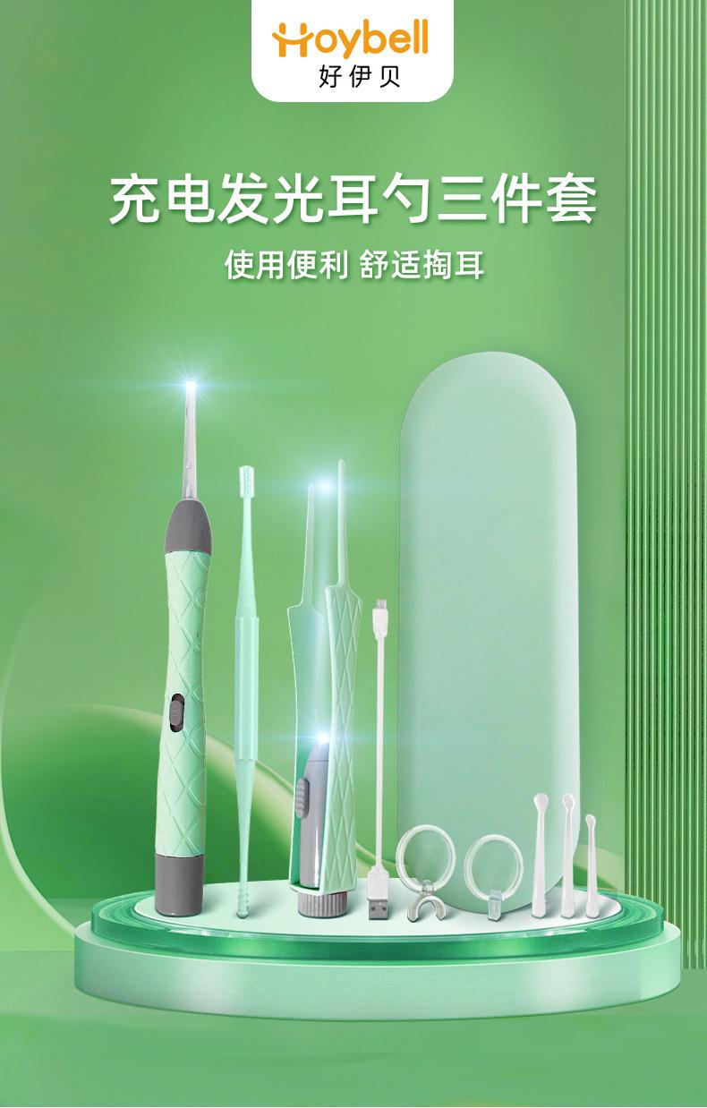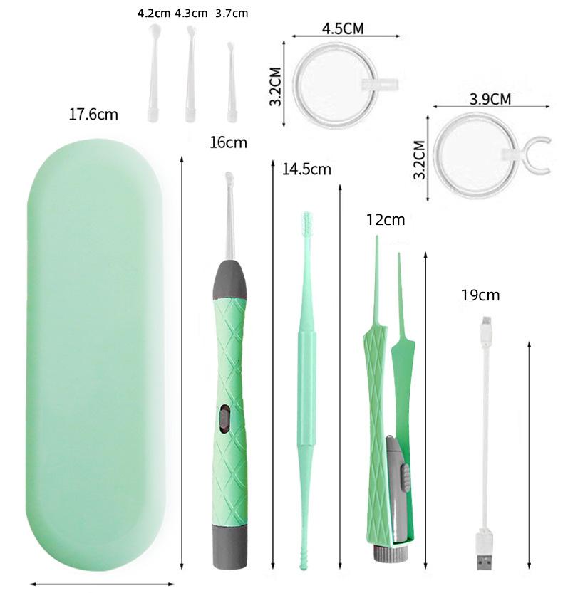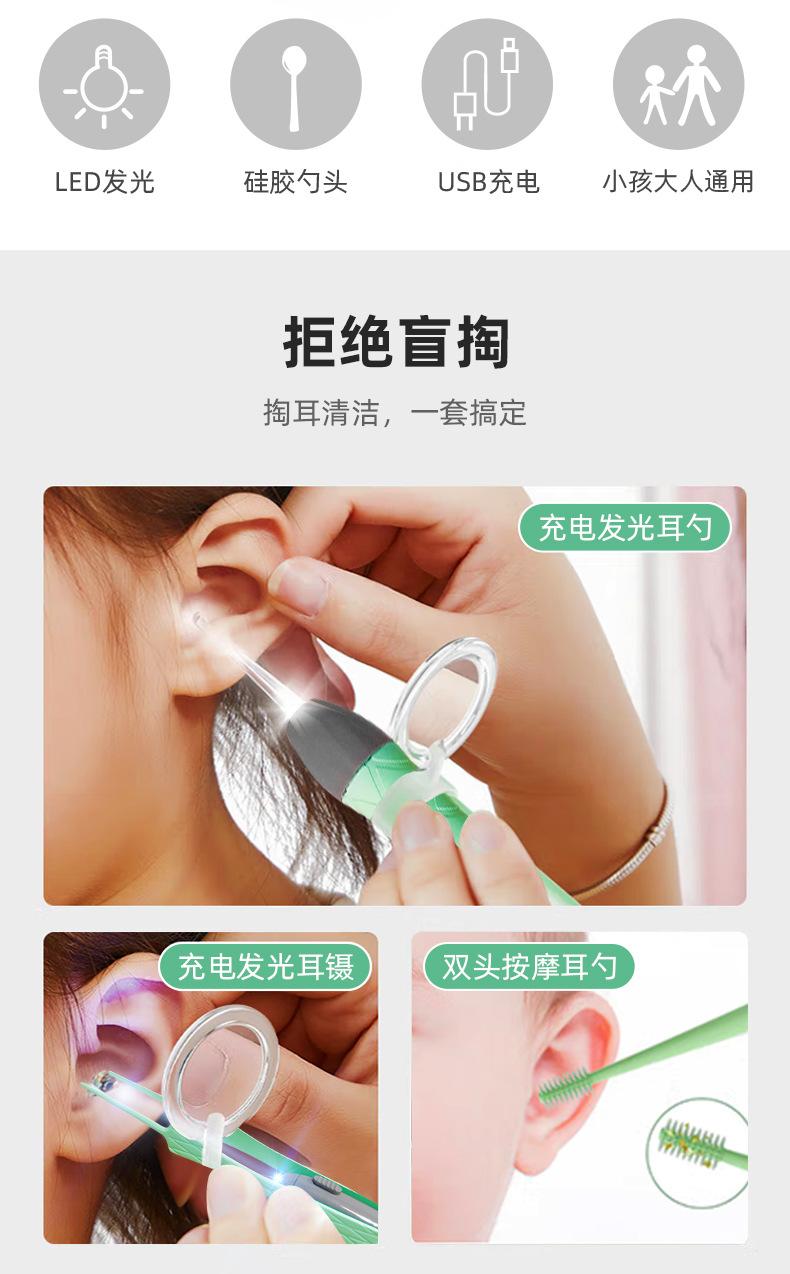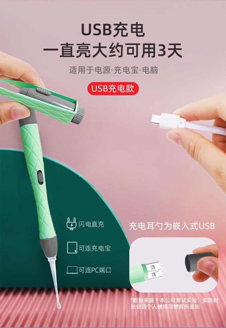 Glowing Ear Spoon 3-piece USB Green, Glowing Ear Spoon 3-piece USB Purple