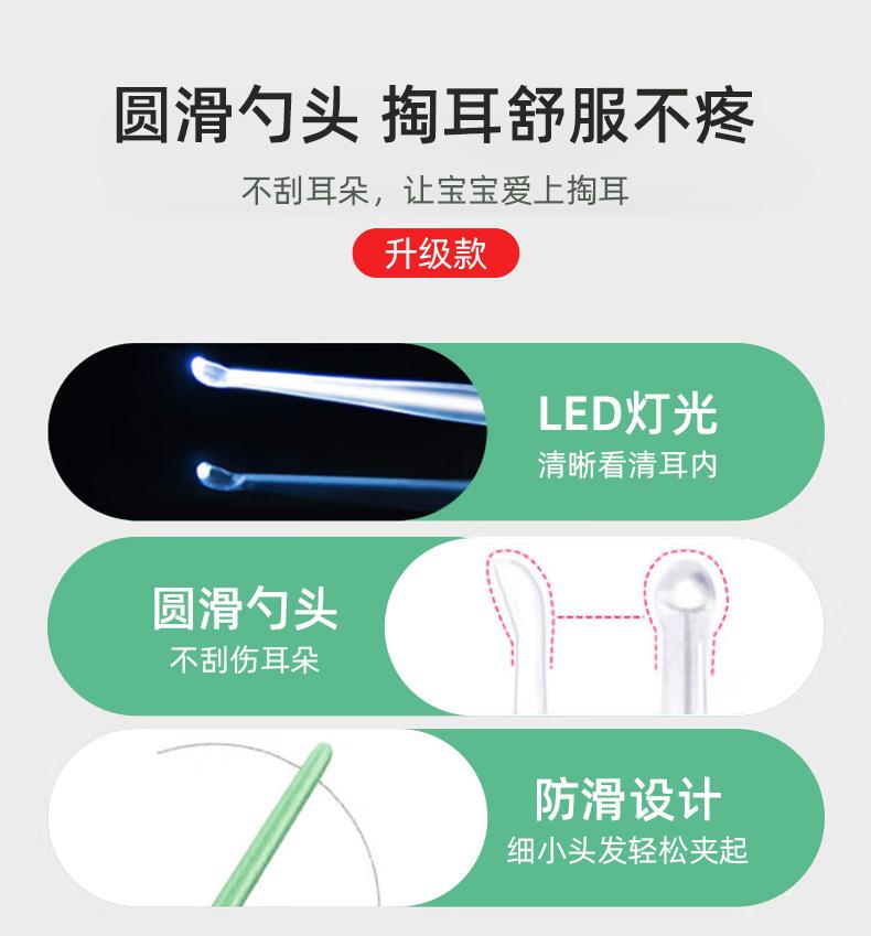 Cuchara para Oídos Brillante Haoyibe para Niños y Adultos, Limpiador de Oídos con Luz, Herramienta Pinzas para Cera de Oídos para Limpieza de Oídos