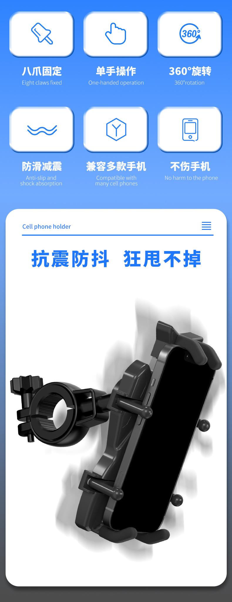 Soporte para Teléfono Móvil para Bicicleta, Coche Eléctrico, Comida para Llevar, Soporte de Navegación de Ocho Garras, Antivibración, Antideslizante, Accesorios para Ciclismo de Montaña al Aire Libre