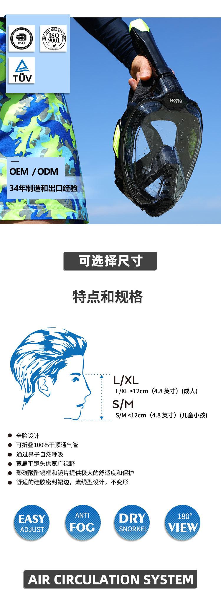 Equipo Profesional de Buceo Wave Máscara de Buceo Libre Snorkel de Buceo Totalmente Seco de Alta Definición Natación Marco Grande Antivaho