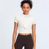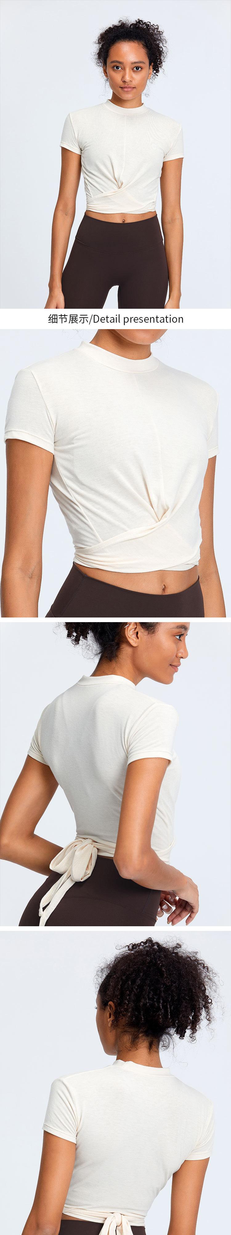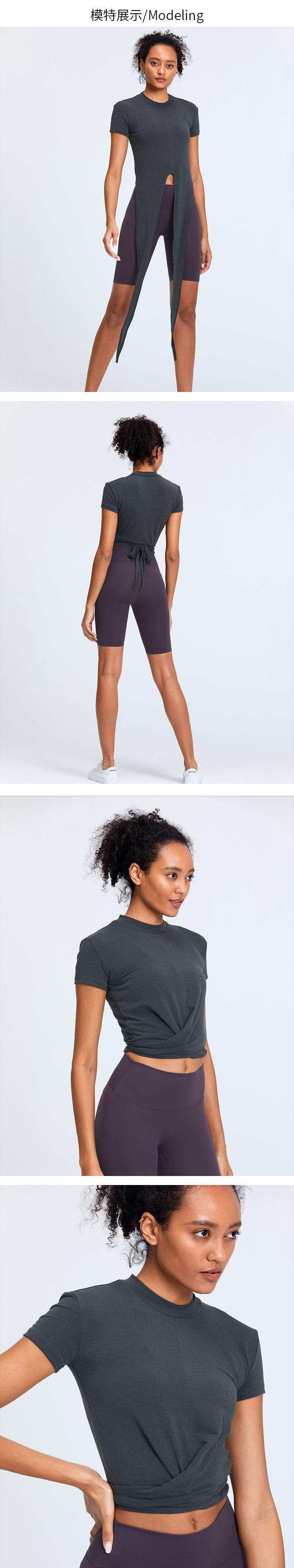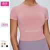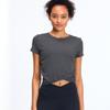 Traje de yoga deportivo ajustado de manga corta para mujer, de secado rápido, para entrenamiento físico y deportivo, con cintura expuesta.